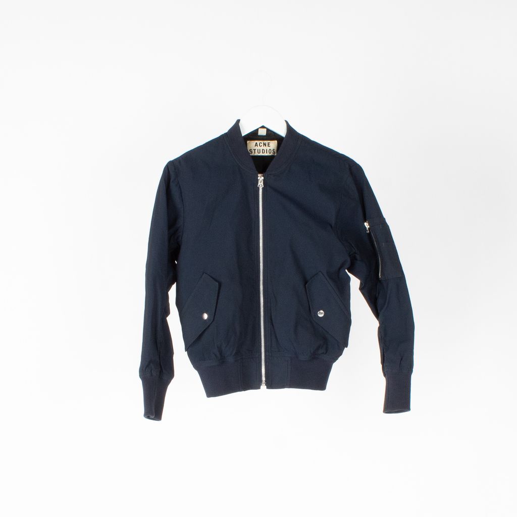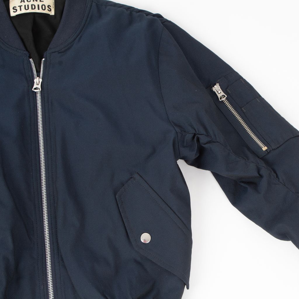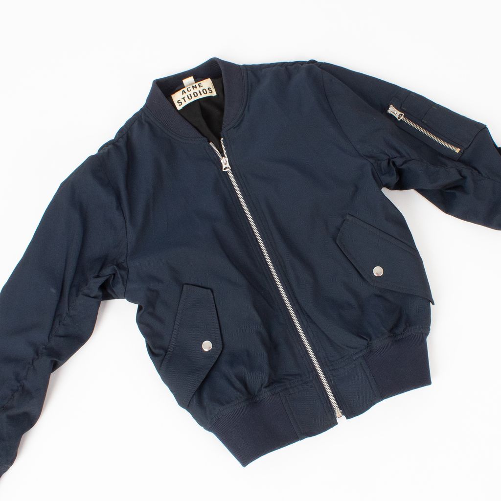 Effortlessly cool, this soft body jacket from Acne Studios is a minimal alternative to the classic black bomber. Features zip front closure, rib knit bands at neck, waist, and wrists, slanted front pockets with snap closure, and fashion pocket with zip closure on arm.