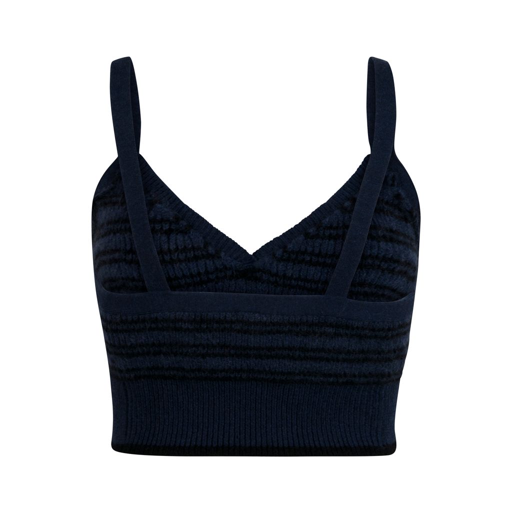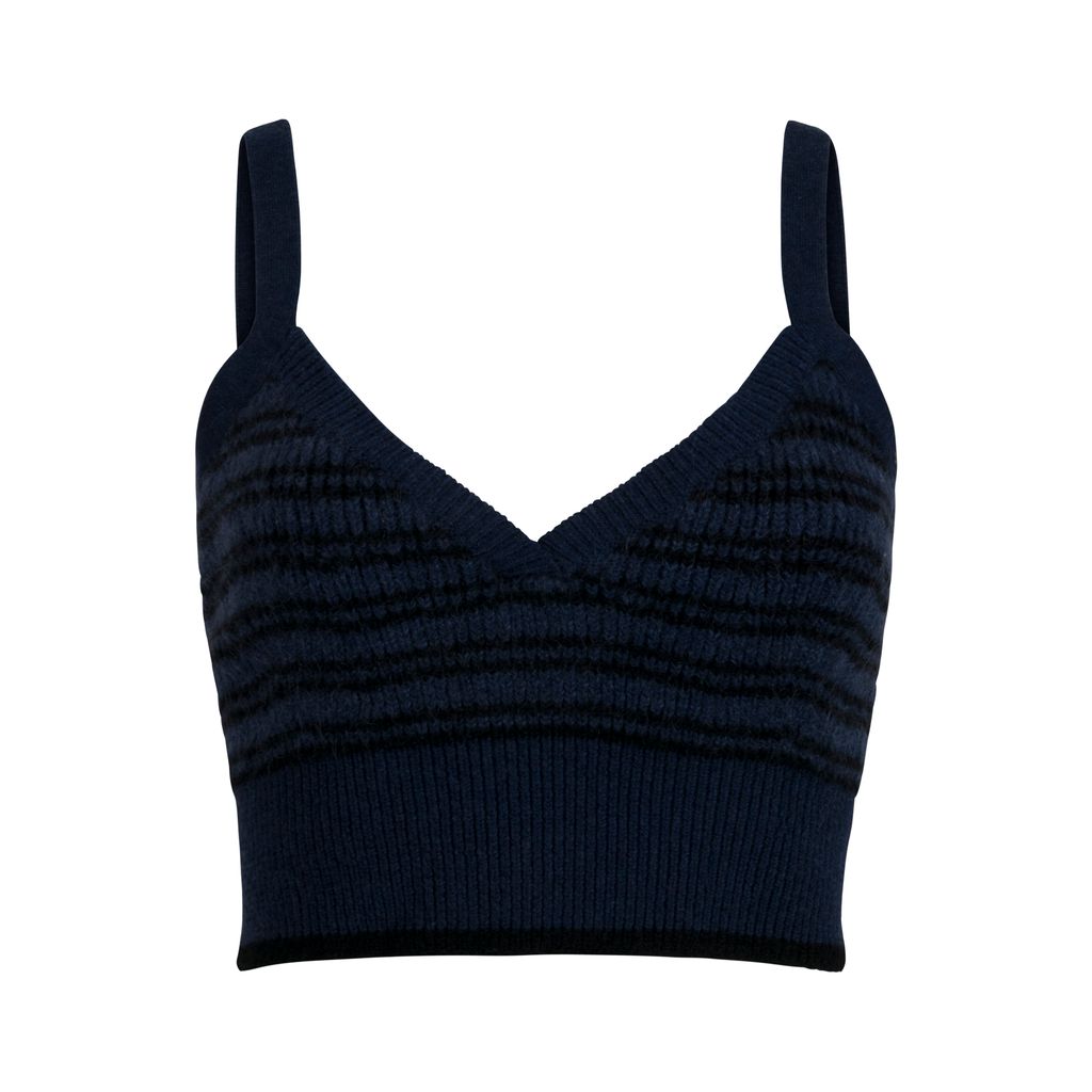 This knit crop top by Adam Selman is made from a stretch wool mohair blend fabric, has a v-cut neckline, and has skinny straps. This crop top features a fitted ribbed hemline and is in excellent condition. A perfect crop top for any outfit, pair with denim or a fitted skirt for a night out.