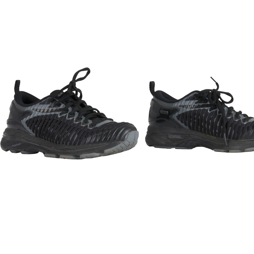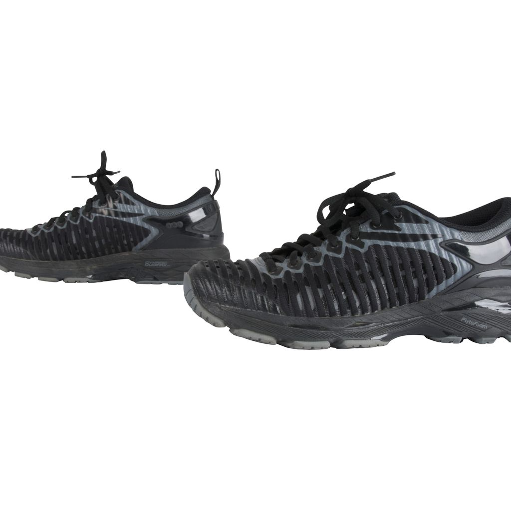 Kiko Kostadinov channels his runway show into this outdoor-inspired “Black & Steel Grey” release. Introducing the GEL-DELVA™ sneaker, Kostadinov has innovatively bridged the gap between high-end performance and design with this distinct new model. Fusing the GEL-FUJI TRABUCO™ 7’s upper with the GEL-KAYANO™ 24 heel tooling, a unique mesh cage covers the ASICS stripes, while the midsole encapsulates FLYTEFOAM™ technology and a Dynamic DUOMAX™ material. Gently worn, in good condition, marks and scuffs as pictured.