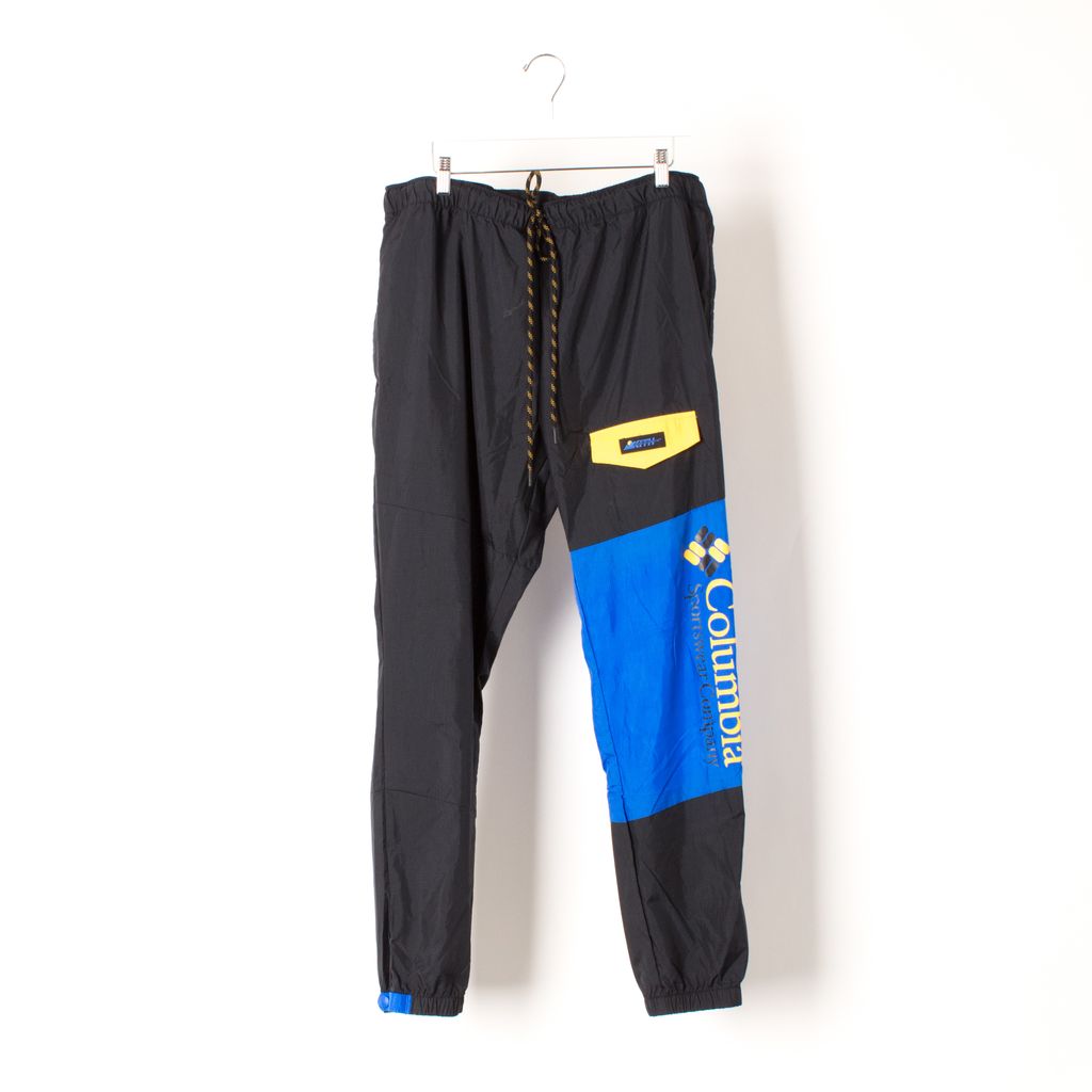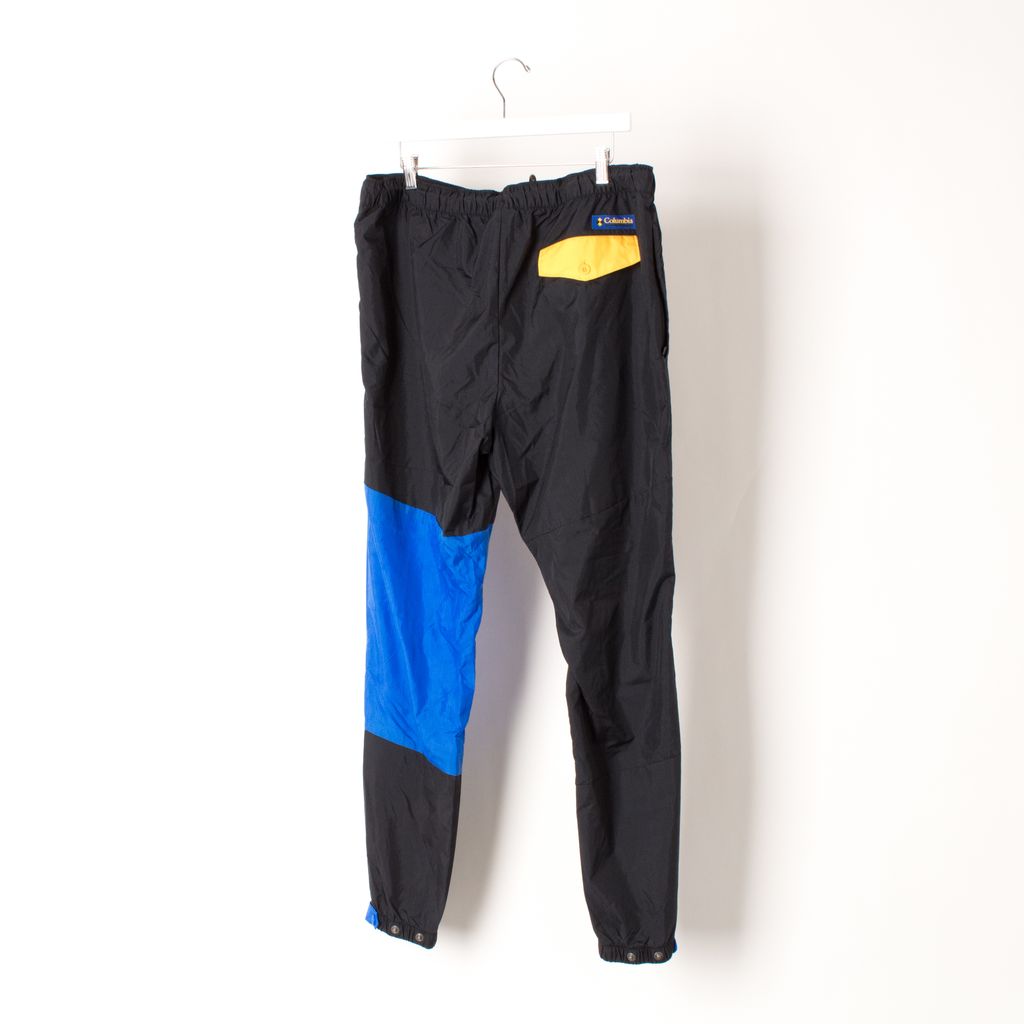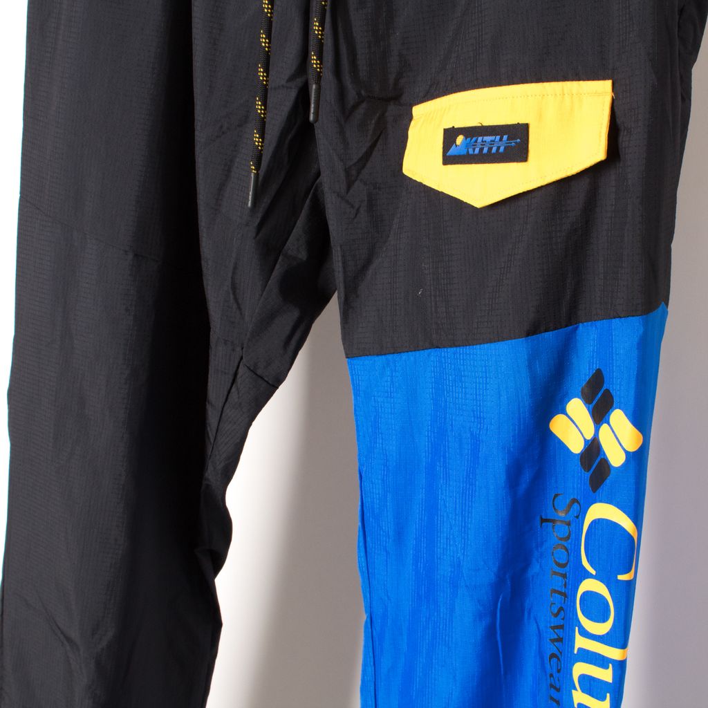 Santa Anna wind pant from exclusive Kith x Columbia collaboration. Recycled mini-ripstop nylon fabric, elasticated waistband, two concealed zipper hand pockets, elasticated cuffs with button snap closure. Gently worn.
