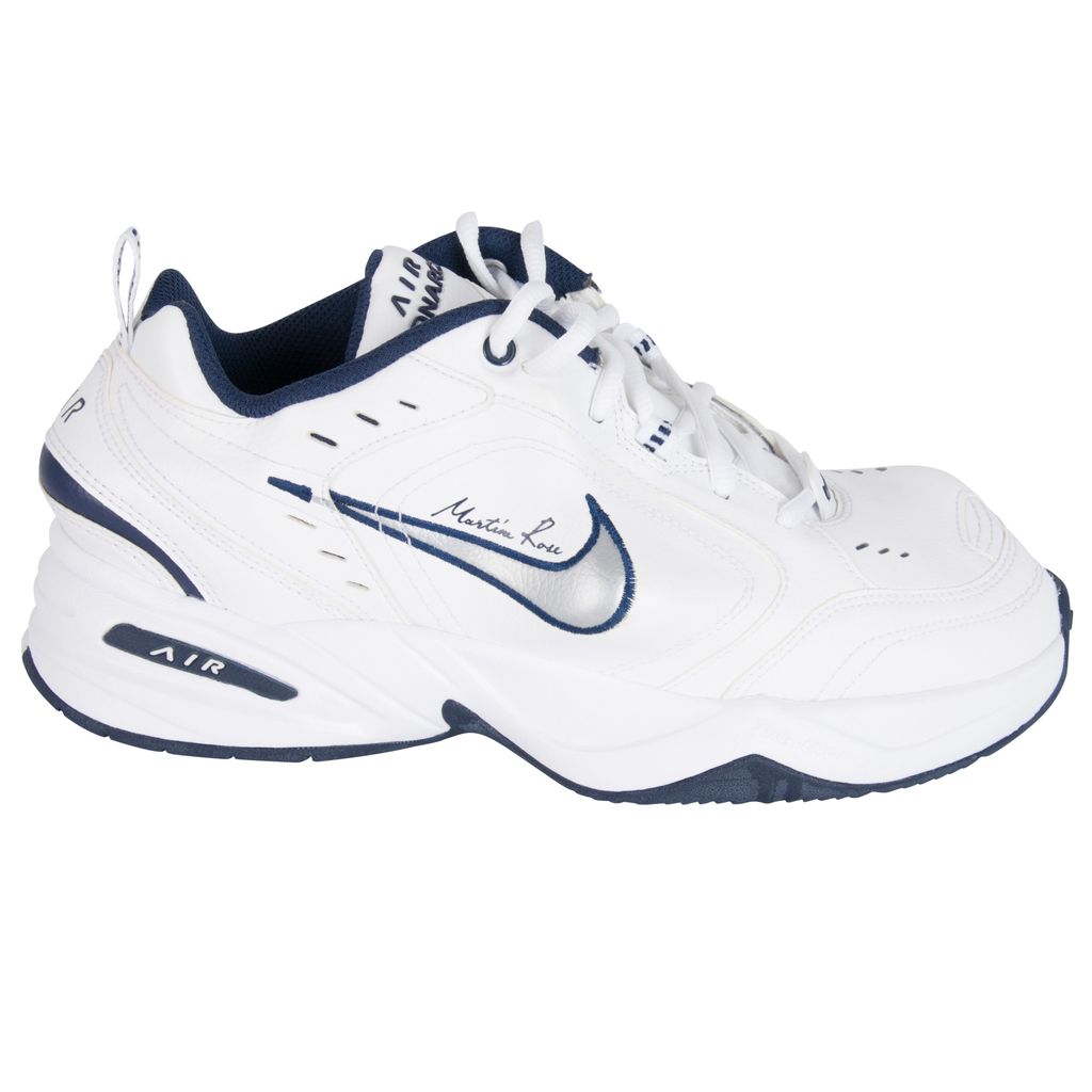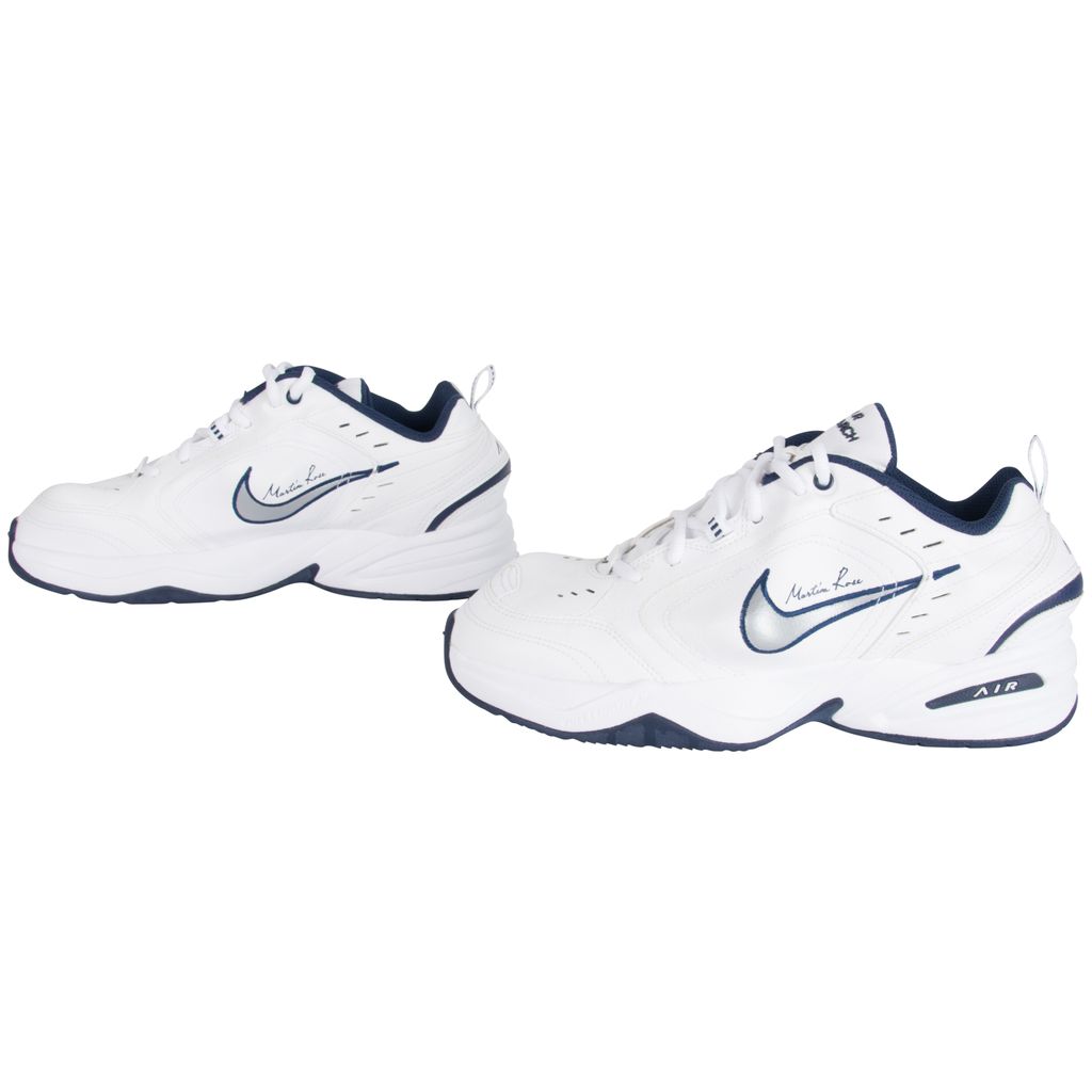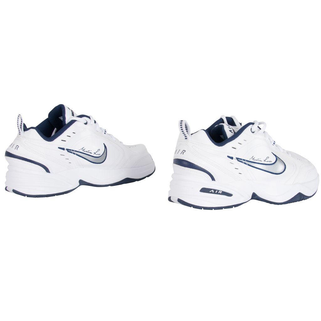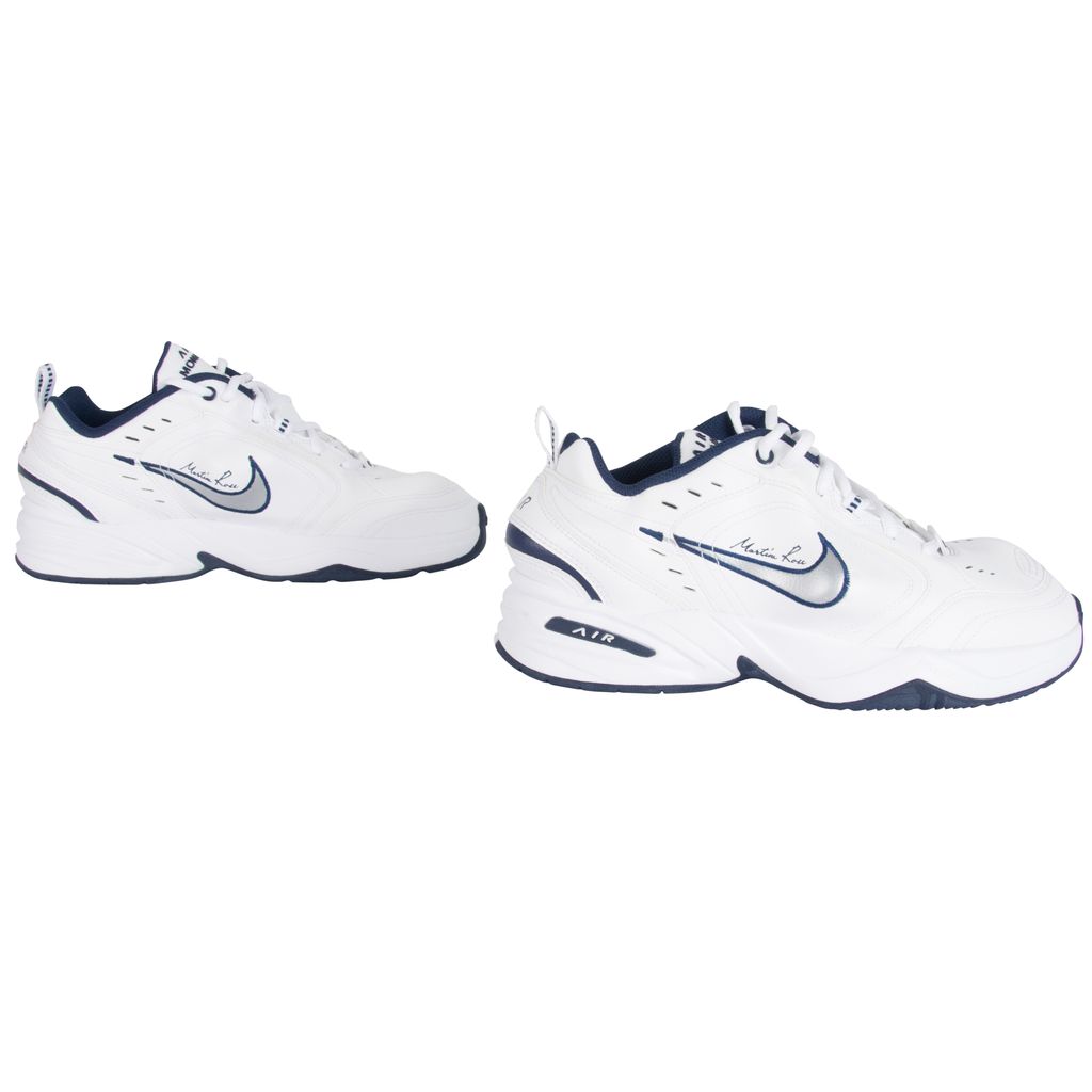 These Martine Rose x Air Monarchs IV in White Navy, London-based designer plays with the general shape of the lifestyle trainer, thanks to protruding PU inserts underneath the white leather upper. Martine Rose signature is seen above the distorted Nike swoosh. Brand new, comes in original packaging.