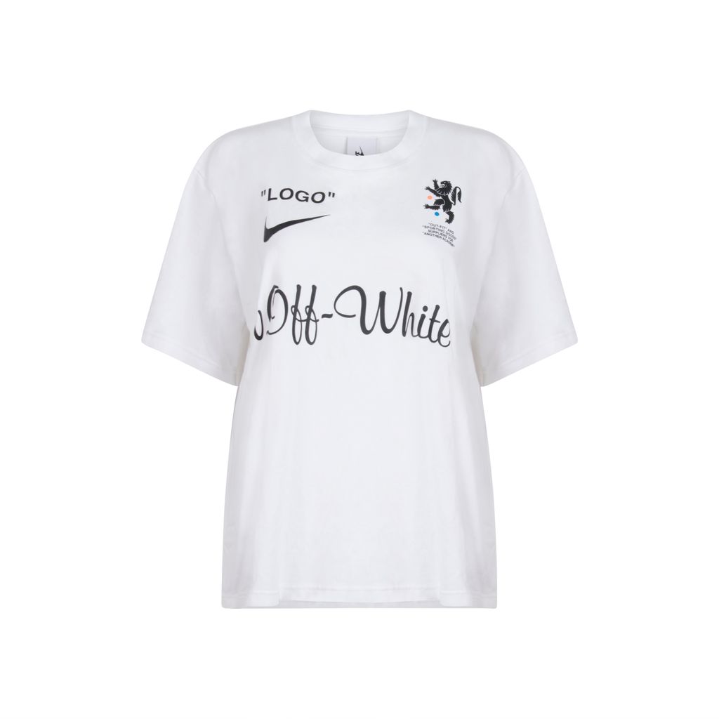 Just prior to the 2018 World Cup, Virgil Abloh’s OFF-WHITE collaborated with Nike on a “pitch-ready” soccer collection. The collection featured multiple kits resembling a home and away jersey with t-shirts and hoodies in both colorways.