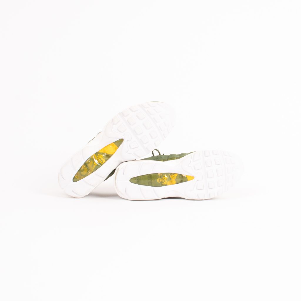 Originating as a surf brand in the 90's, Stussy has paved its way into the hip hop and streetwear scene since and these shoes for Nike are a perfect example of that. Features classic Air Max 95 silhouette, multi-fabric body, tonal laces, and Stussy logo inlay on bottom of sole.