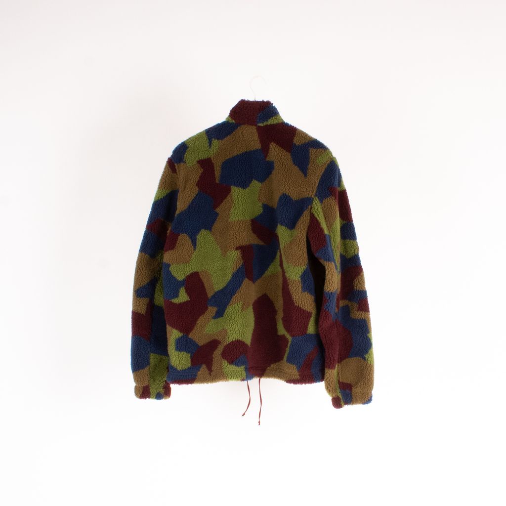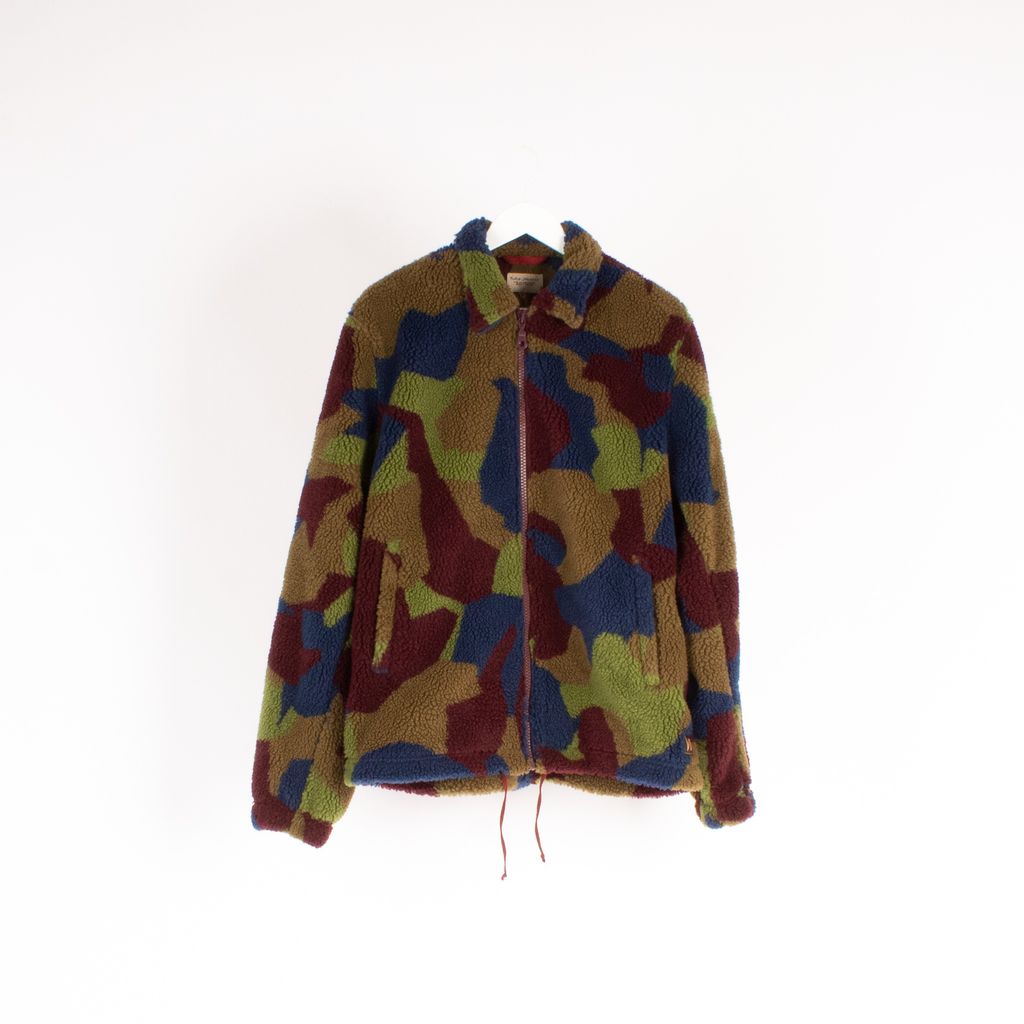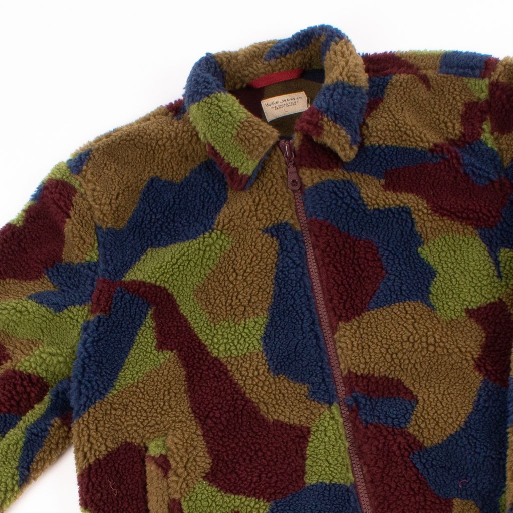 Cozy and colorful, this jacket from Nudie Jeans keeps you on trend with its fleece body and keeps you interested with it's multicolored print. Features all over abstract camouflage print, full zip front closure, small collar, elastic wrist cuffs, pull ties at waist for adjustable size, and slanted front pockets.