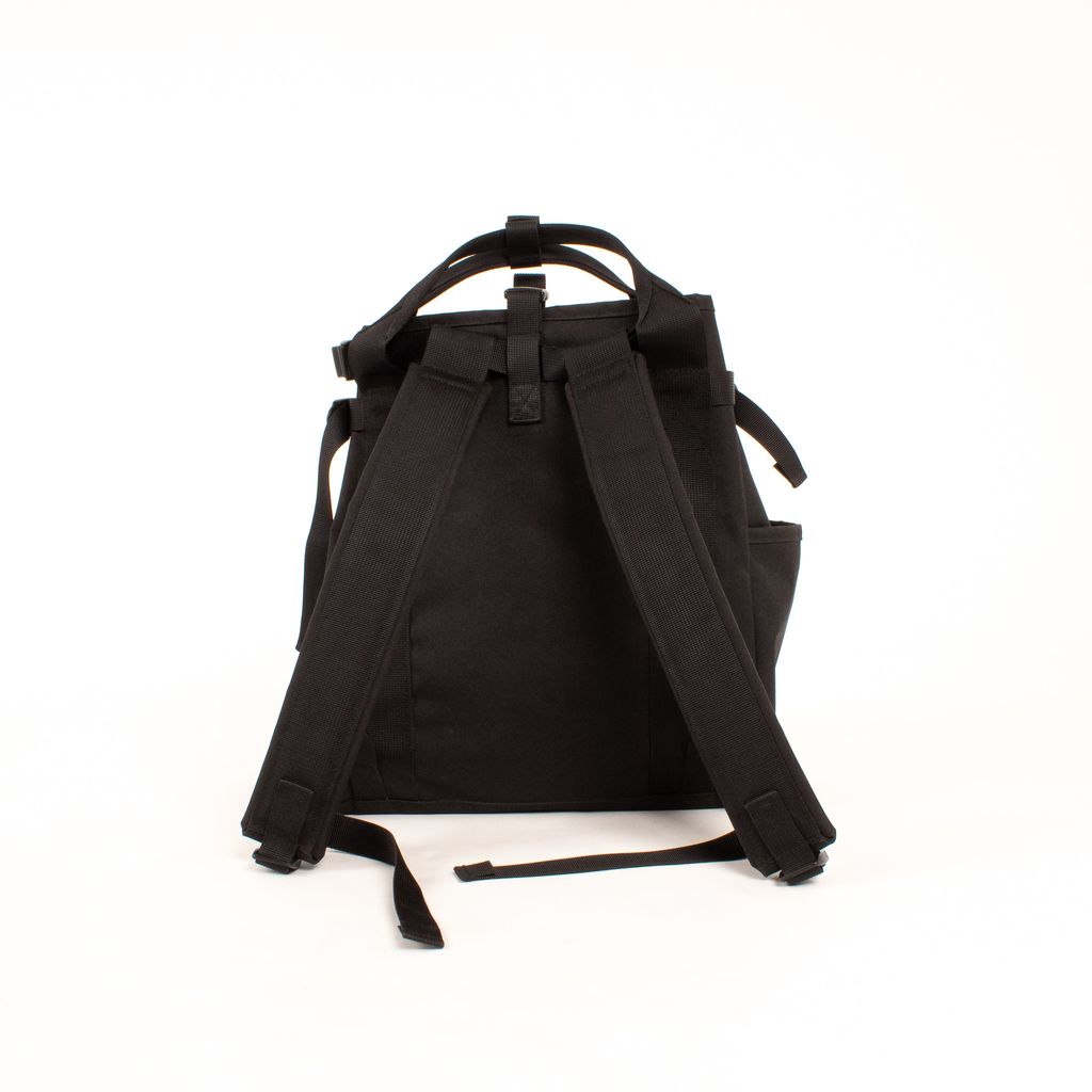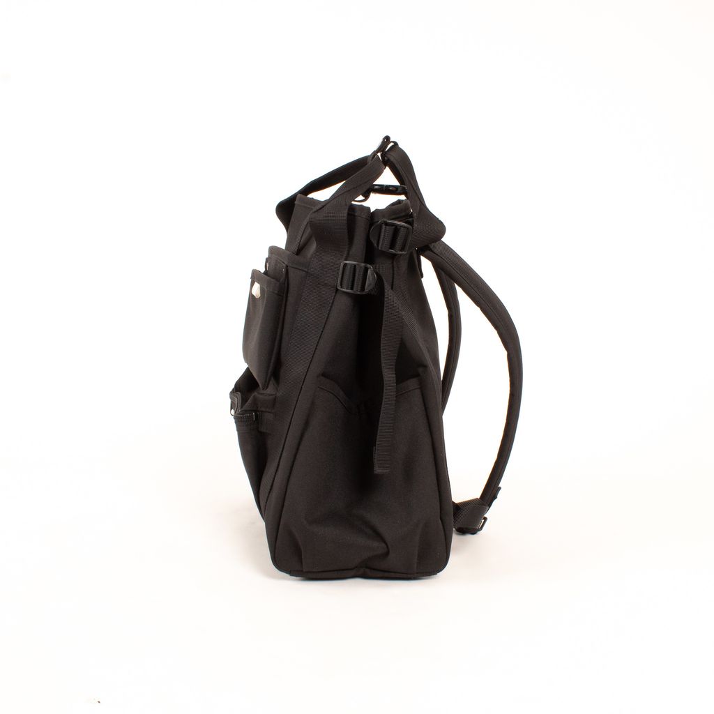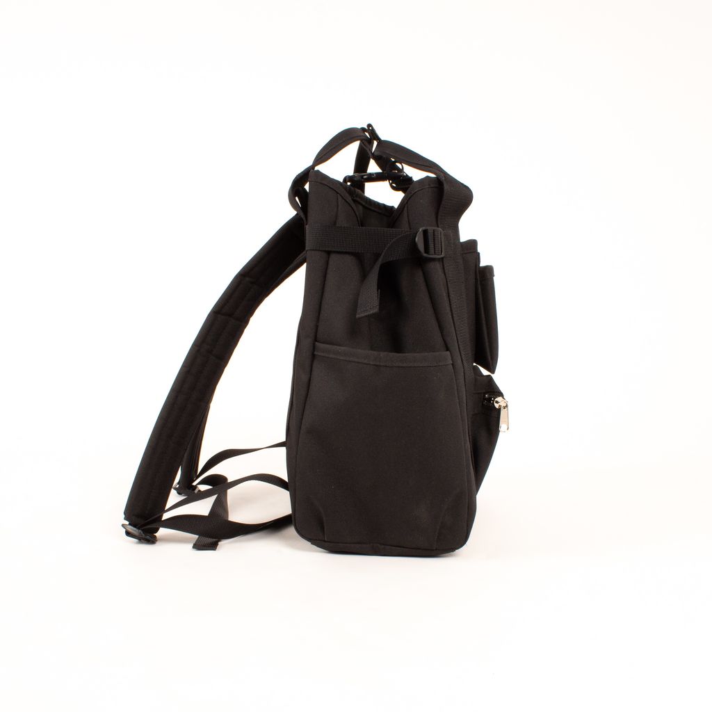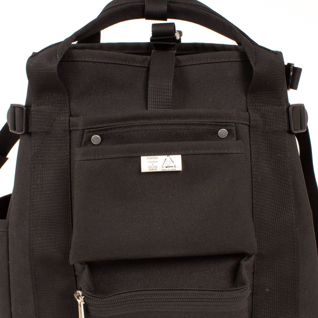 Carrying on the Japanese tradition of excellence in craftsmanship, this bag comes from a collaboration between Porter-Yoshida & Co. and the brand Beams . Design highlights include thick backpack straps, thin tote handles on top, pull buckles on sides, and small front pouches (one with zip closure).