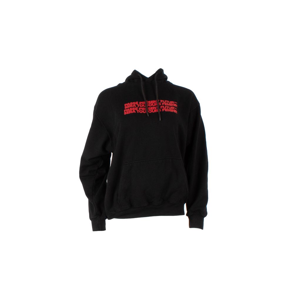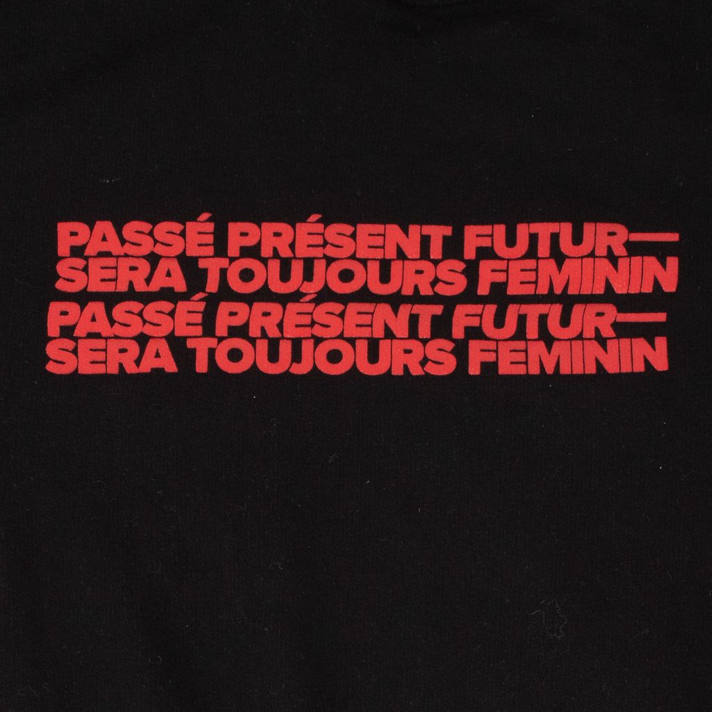 Designed by Christian Gonzalez for Emily Oberg's own line Sporty and Rich, this hoodie is the epitome of Big Feminine Energy. Features full hood with pull ties, "Passé Présent Futur Sera Toujours Feminin" chest texts which translates to "Past Present Future Will Always Be Female", kangaroo front pocket, and rib knit bands at waist and wrists. Sizing is not listed for this item, refer to measurements for exact fit.