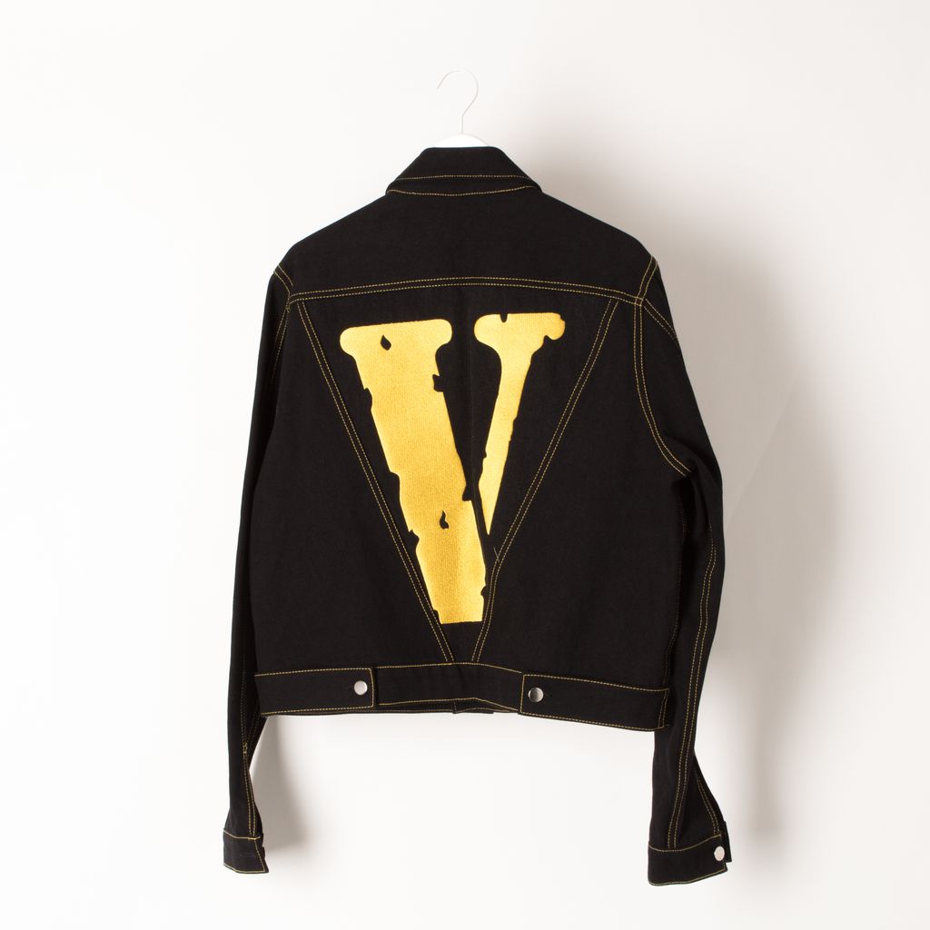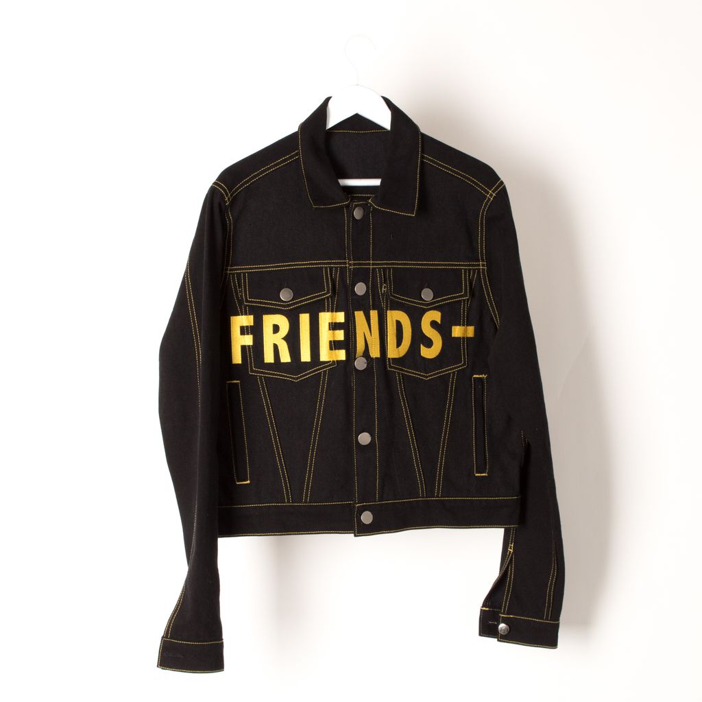 Like new, incredibly rare VLONE Friends trucker jacket. Features tonal stitching, embroidered graphics printed across the front and VLONE branding across back. Button up front, heavyweight denim, double front pocket.
