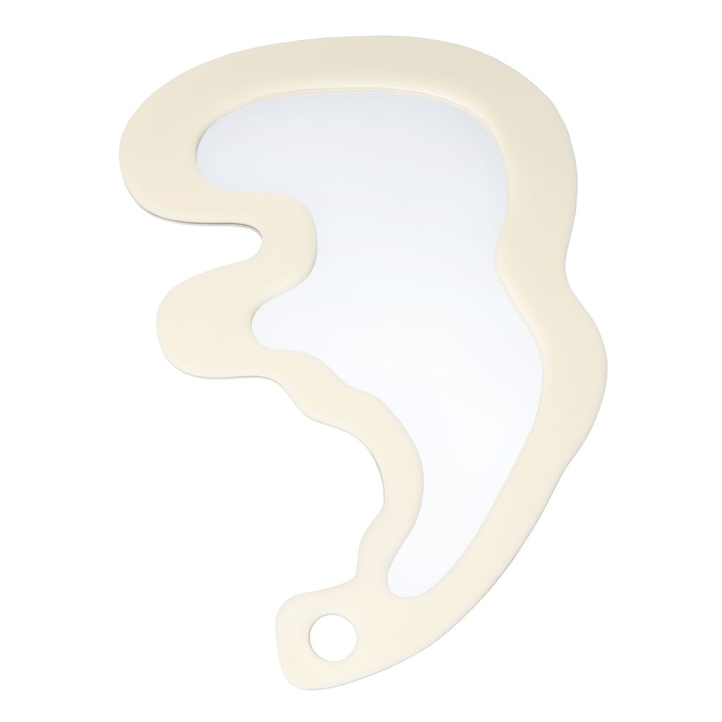01 Curve Hand Mirror in Bone features acrylic mirror and base. Laser Cut and Designed in Los Angeles, CA.