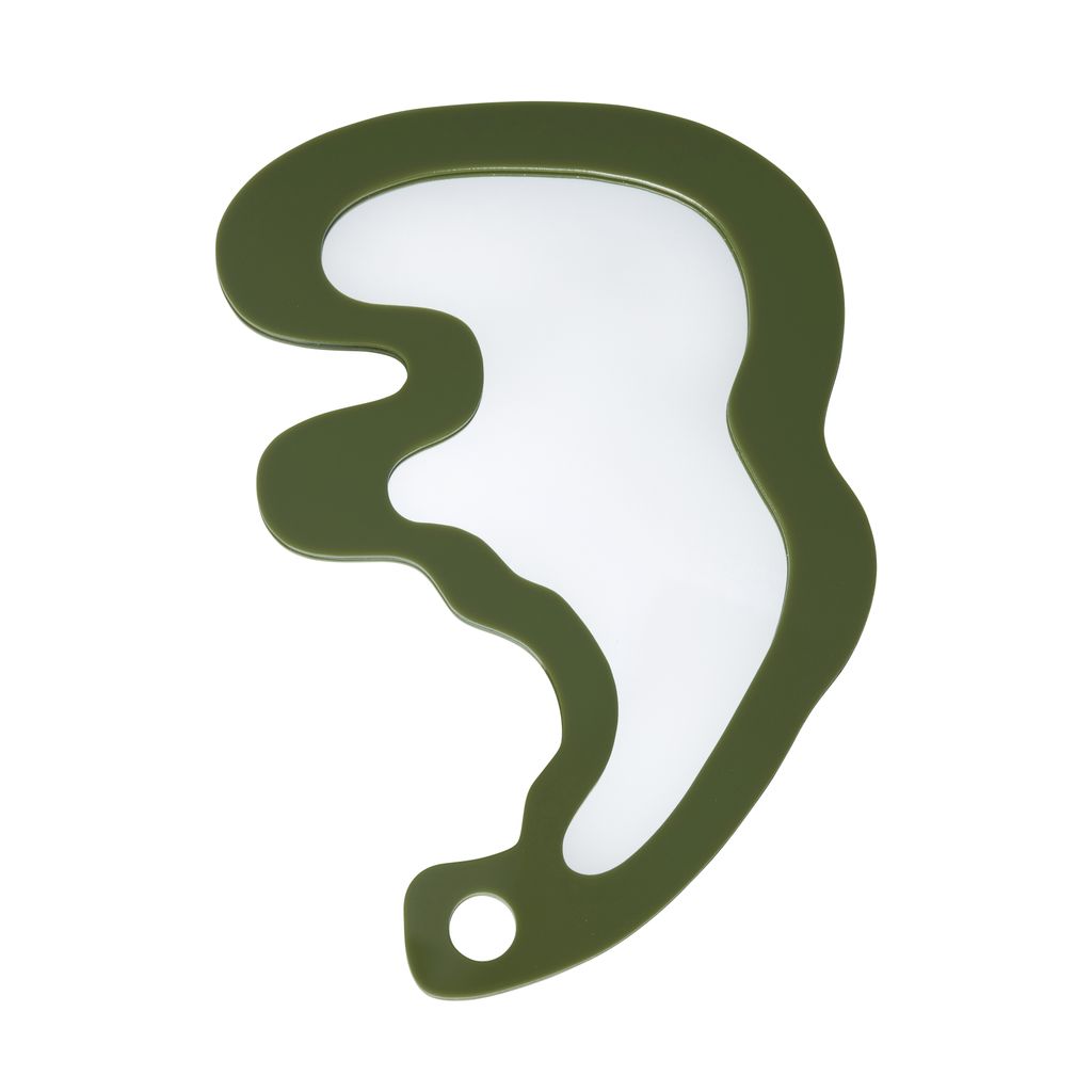 01 Curve Hand Mirror in Olive features acrylic mirror and base. Laser Cut and Designed in Los Angeles, CA.