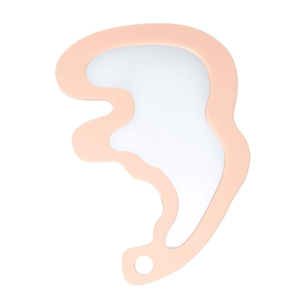 01 Curve Hand Mirror in Peach features acrylic mirror and base. Laser Cut and Designed in Los Angeles, CA.