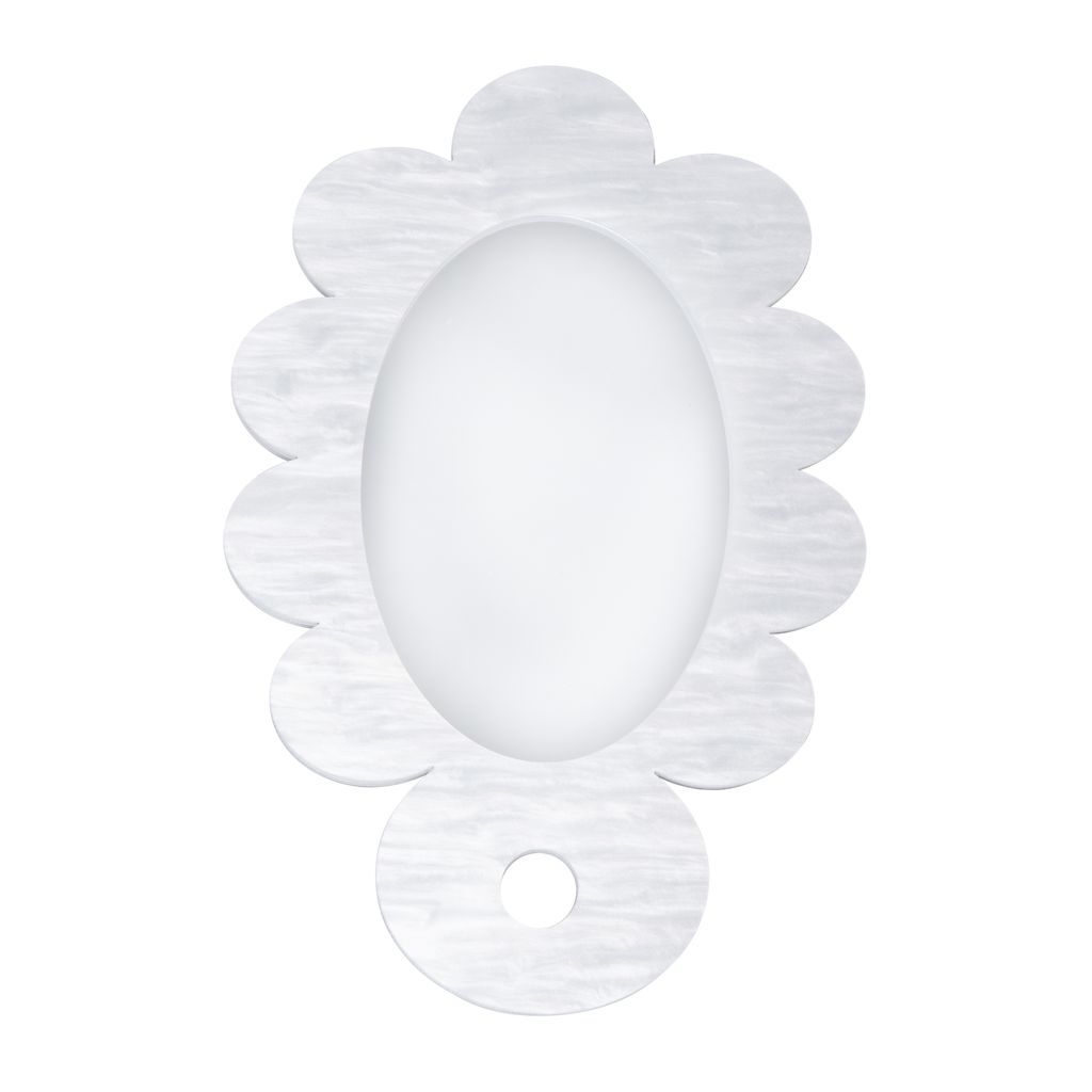 02 Flower Hand Mirror in Pearl features acrylic mirror and base. Laser Cut and Designed in Los Angeles, CA.