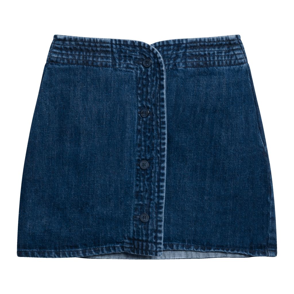 Like new. Stoned denim high waisted mini skirt. Features a stitched front button fastening and waistband and Italian pockets. Sits high on the waist and hits at mid-thigh. 100% cotton.