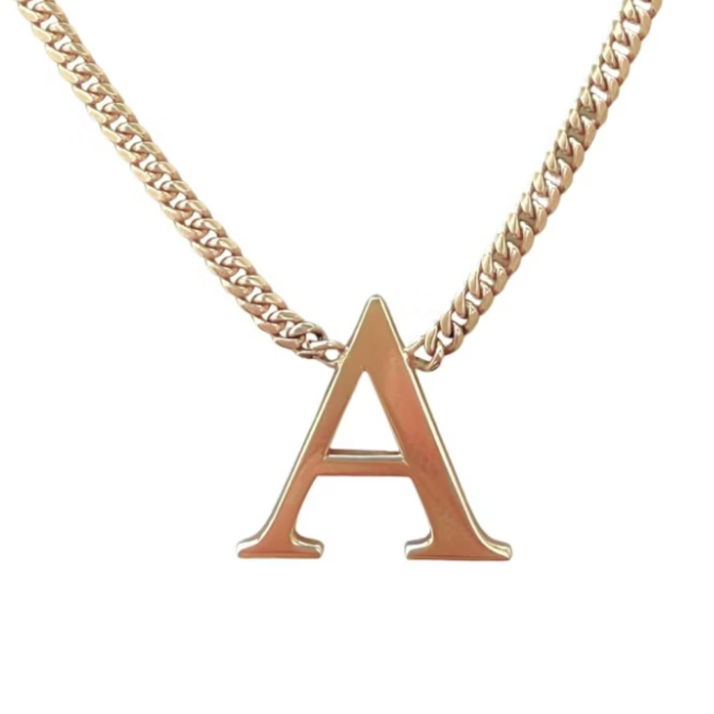 Bold , timeless , and unmistakably personal , this Shylee Rose uppercase Roman Times initial necklace makes a refined statement in solid 14k gold. The crisp serif “A” anchors the piece with classic elegance , while the sleek cuban-link chain adds a modern , everyday edge. A signature necklace meant to be worn on repeat.