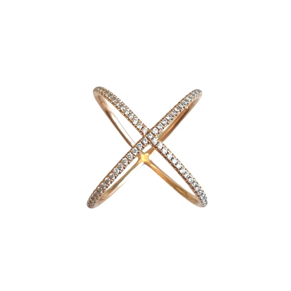 Uber chic , modern and timeless , wear it by itself or stacked , this ring is a must. This 18k solid Rose Gold and diamond X ring is delicate yet impactful and continues to be a staple in every collection. Can be worn as a size 5 or size 6 , depending how you orient the X on your finger.