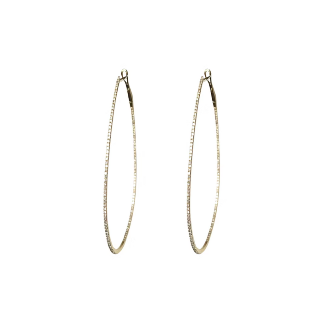 Delicate , classy , chic and timeless , these are a must have! Shine bright with these 18K Yellow Gold Diamond Inside-Outside Teardrop Hoop Earring featuring diamonds set on the front , and inside for a unique look. Lever backs are used for a secure closure , the hoop is 2.5" long , sold as a pair.