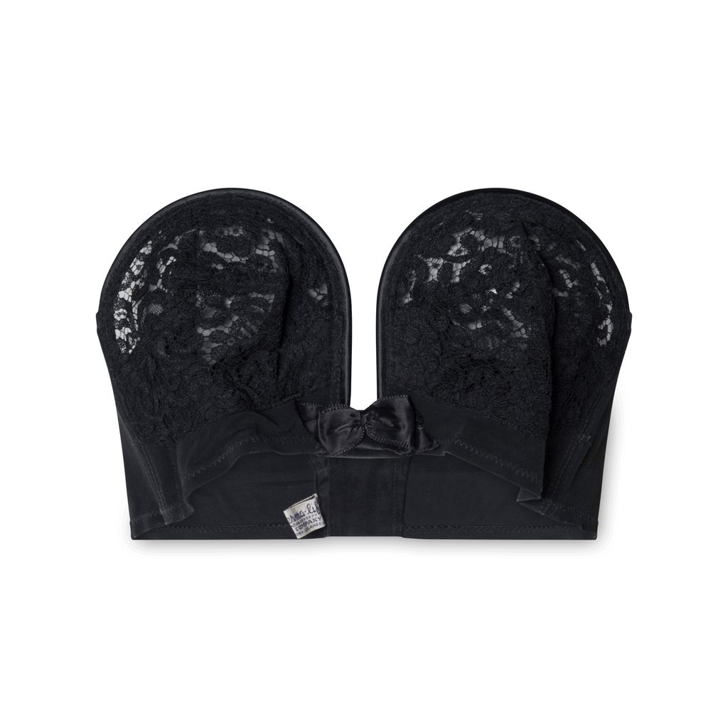 1940s-50s Perma Litt Bra features black lace bullet cups and bow.