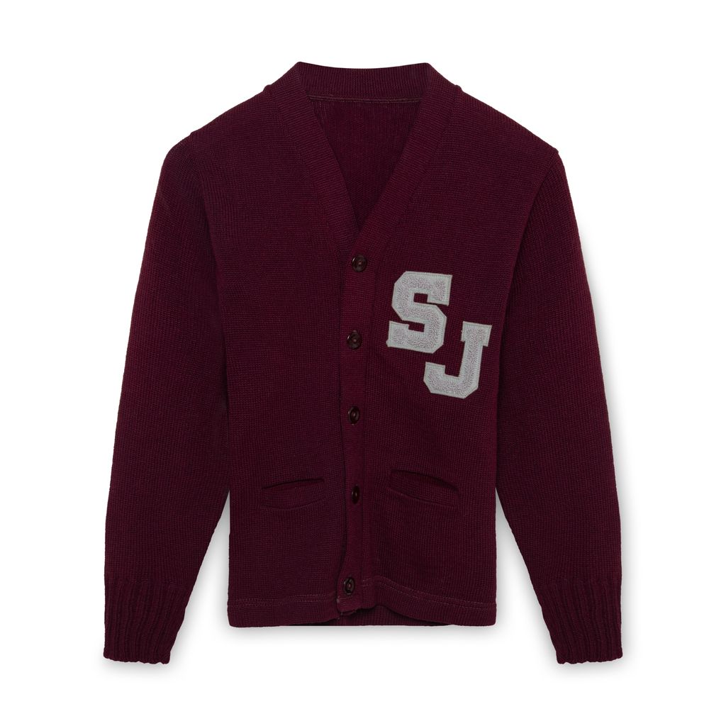 1960’s vintage Princeton varsity cardigan features letter patches at front, two front pockets, minor holes throughout, and button closure at front.
