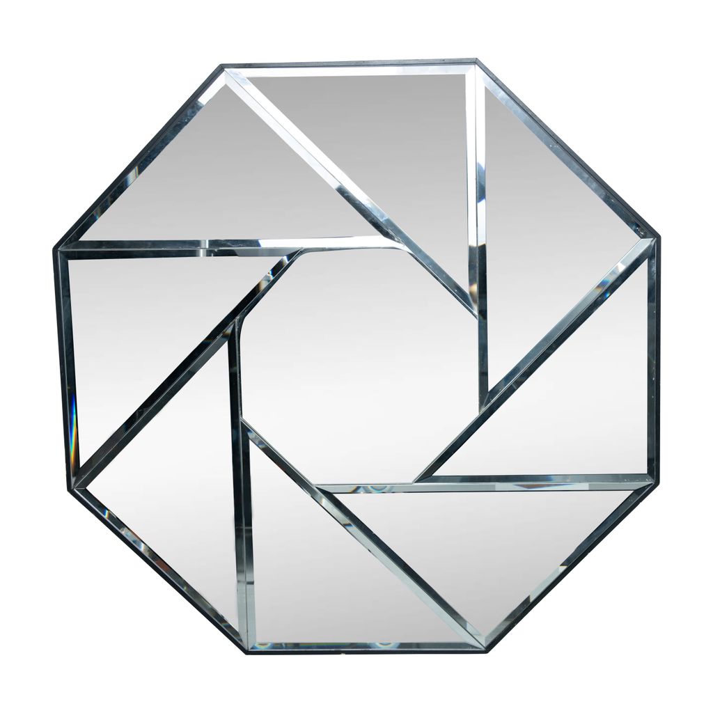 1980s Swirl Mirror features octagonal shape and swirl mirror design.