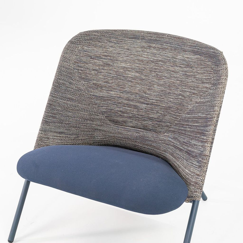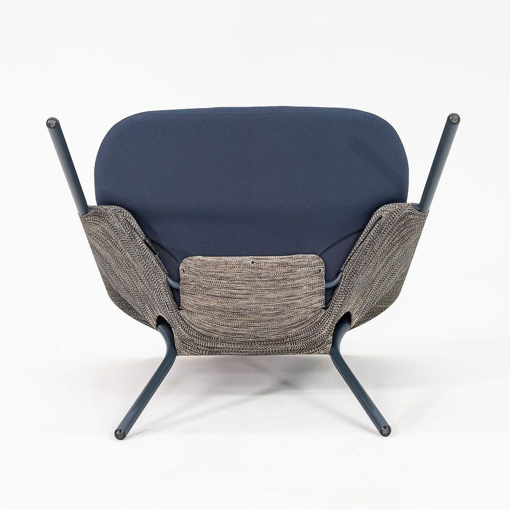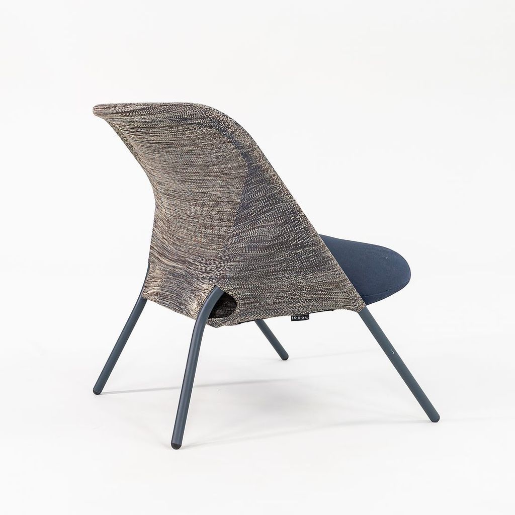 Listed for sale is a Shift Lounge Chair made with a steel frame and upholstered with blue and grey fabrics. The stool was designed by Jonas Forsman and produced by Moooi in the Netherlands. It dates to circa 2022 and is guaranteed as authentic. Condition is very good to excellent with a small blemish on one leg. See photos.