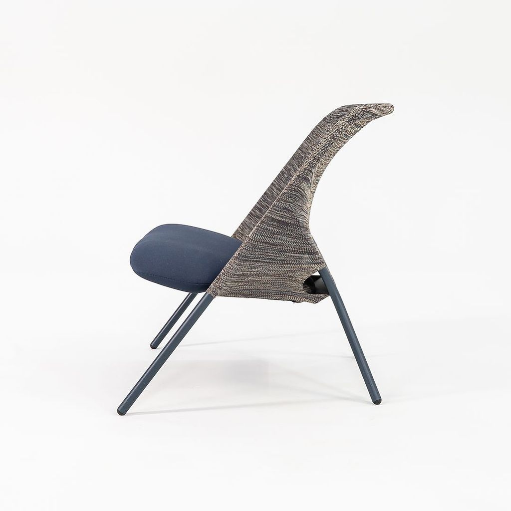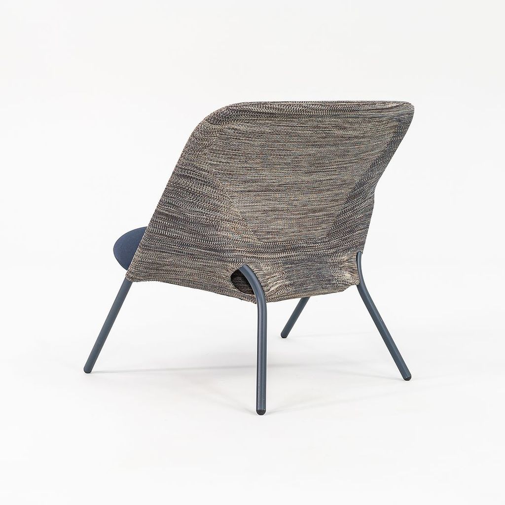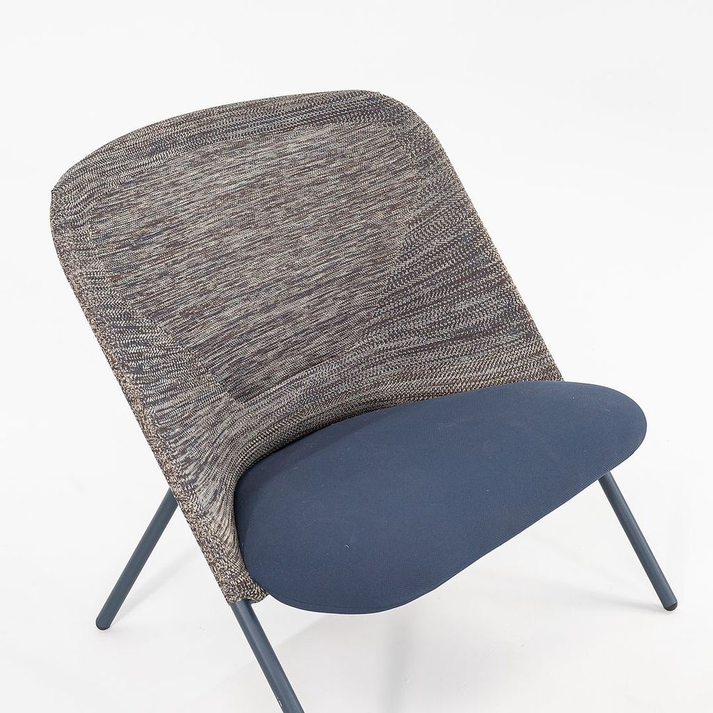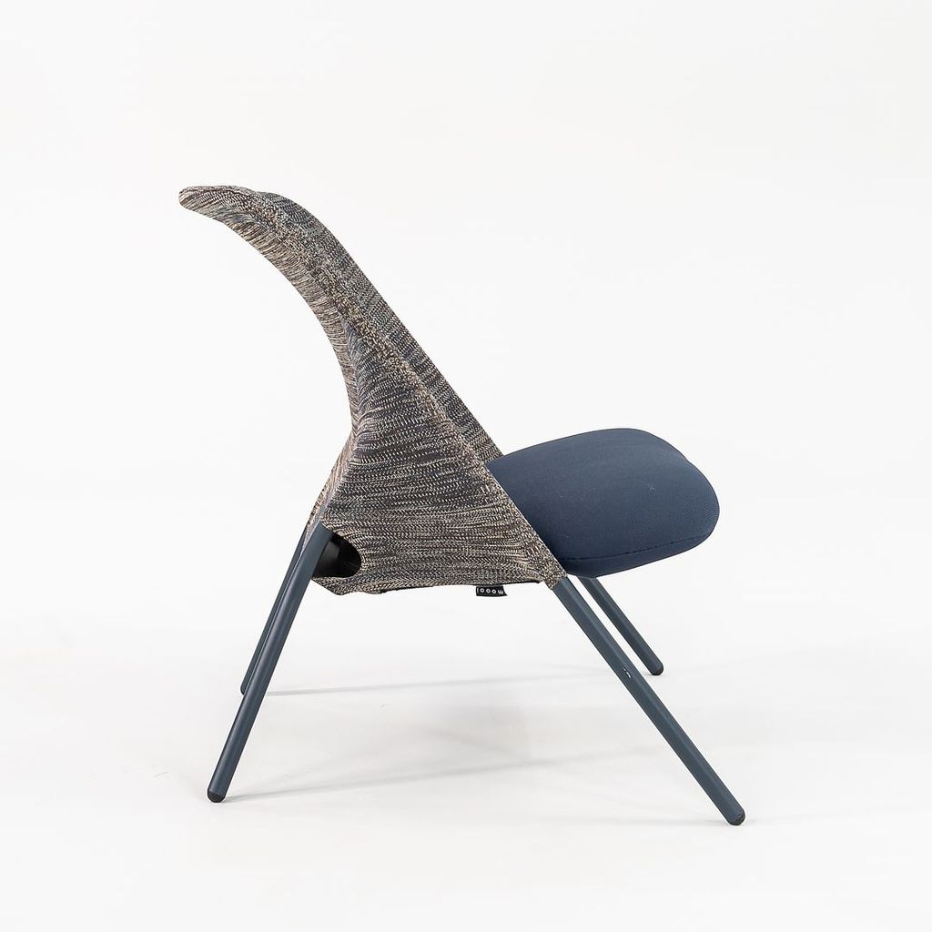 Listed for sale is a Shift Lounge Chair made with a steel frame and upholstered with blue and grey fabrics. The stool was designed by Jonas Forsman and produced by Moooi in the Netherlands. It dates to circa 2022 and is guaranteed as authentic. Condition is very good to excellent with a small blemish on one leg. See photos.