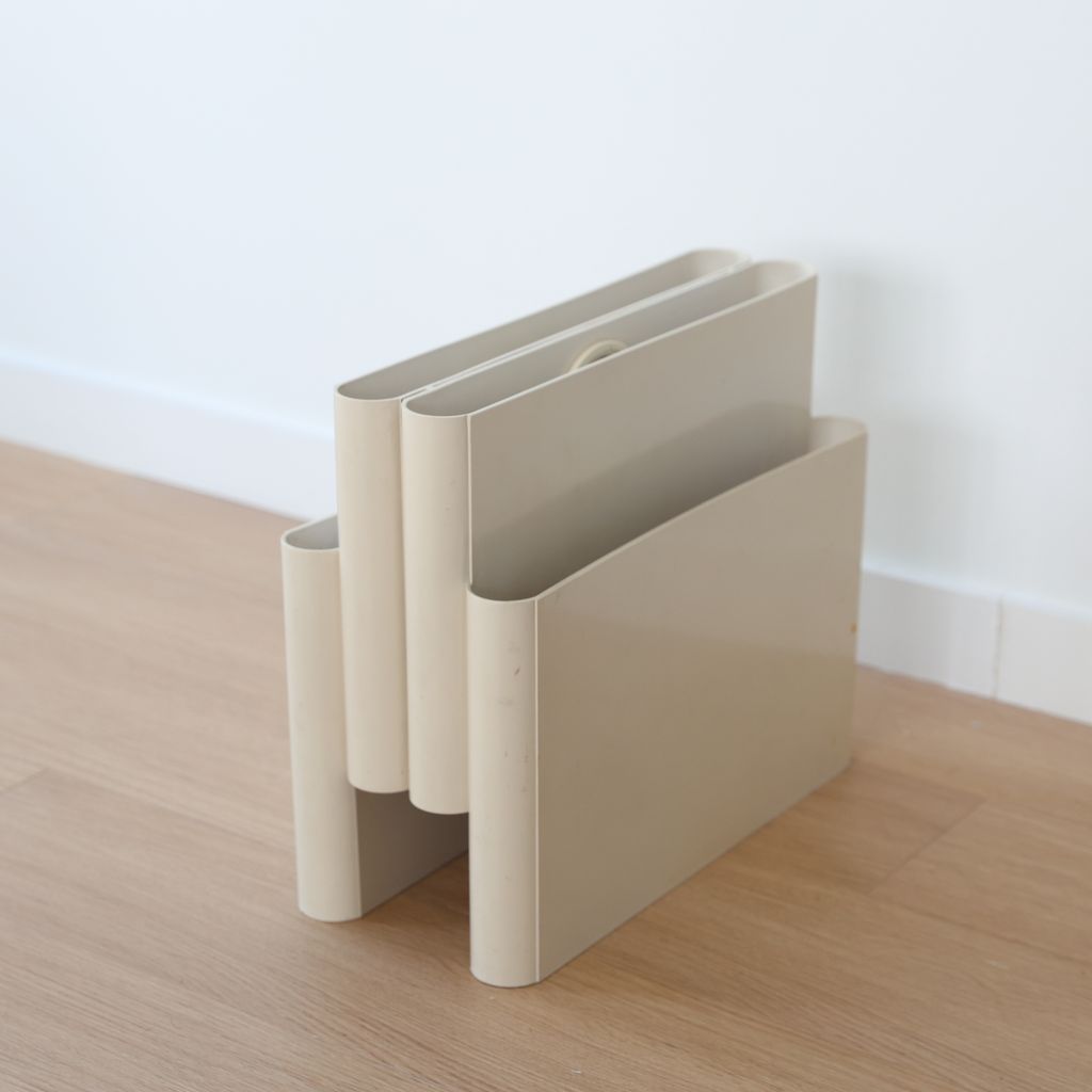 4 Pocket Rack designed by Giotto Stoppino for Kartell, 1970s Italy in cream for vinyl/magazines.