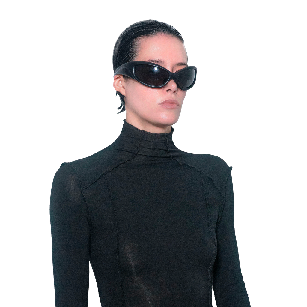 3D printed sunglasses made in London for PRODUCTS BY BETSY JOHNSON powered by Tides Studios. These frames have polarised lenses and tuck down into a sleek profile utilising a trifold gullwing motion. The frames are 3D printed in nylon using a zero waste manufacturing loop. Comes with an upcycled case.