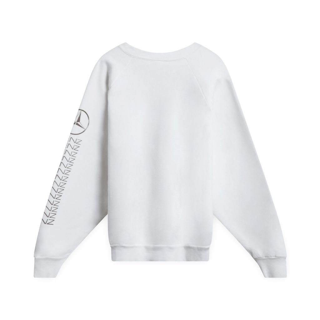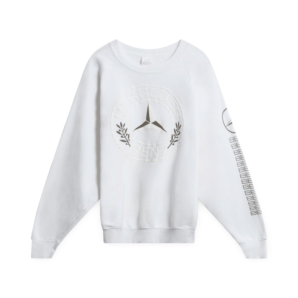 Vintage sweatshirt features rib-knit collar and 25inMercedes-Benz emblem on the chest