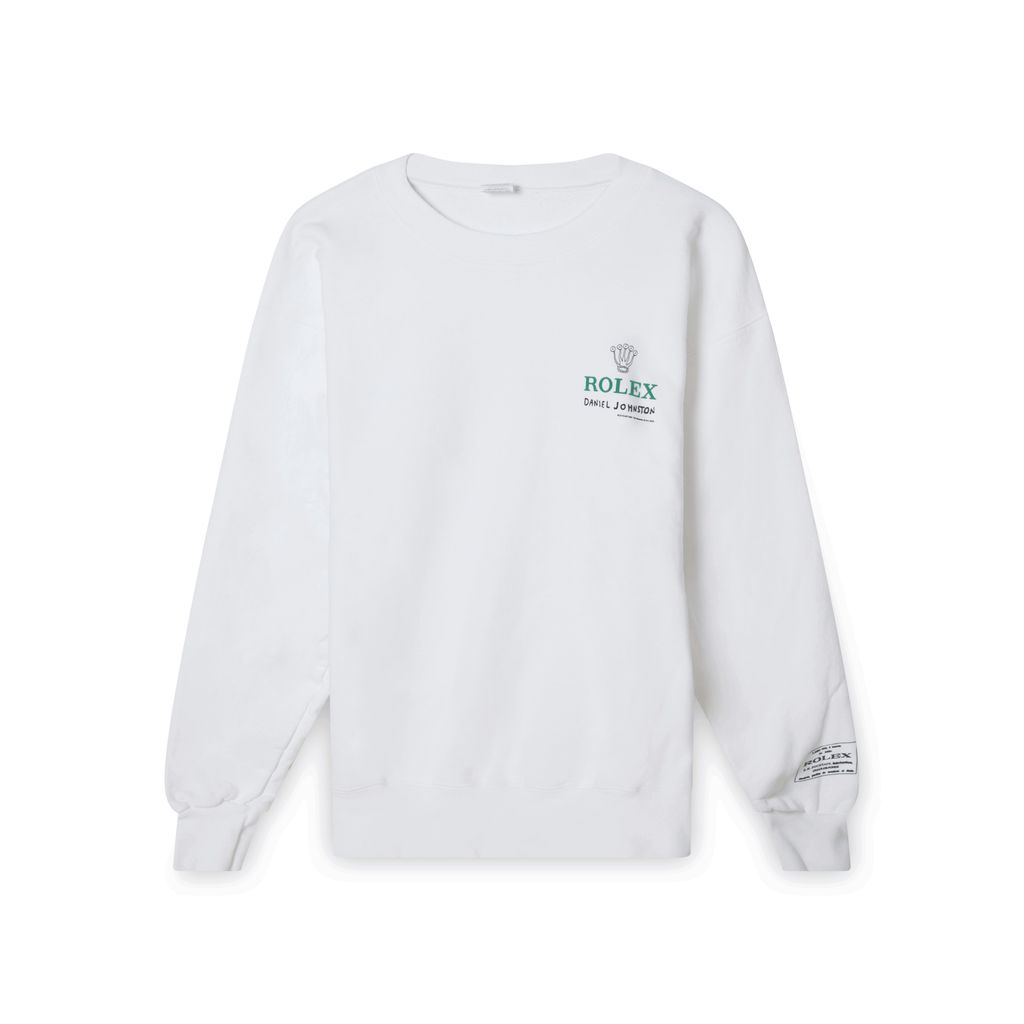 11oz white crewneck sweater featuring screen-printed graphics by Seth Fountain for The Museum of Art.