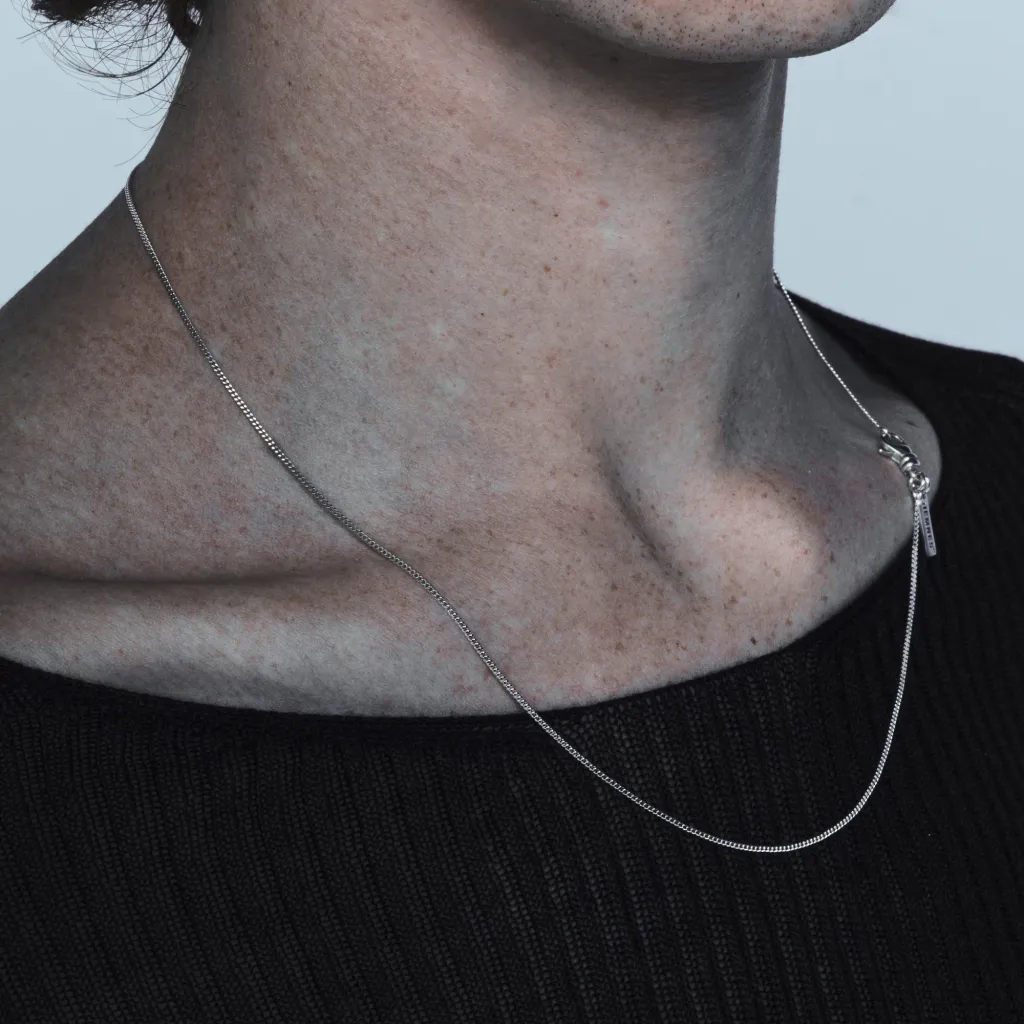 CHAIN NECKLACE WITH OUR SIGNATURE SWIVEL-CLOSURE & ENGRAVED LOGO TAG. HANDCRAFTED IN LOS ANGELES FROM RECYCLED ITALIAN 925 STERLING SILVER.