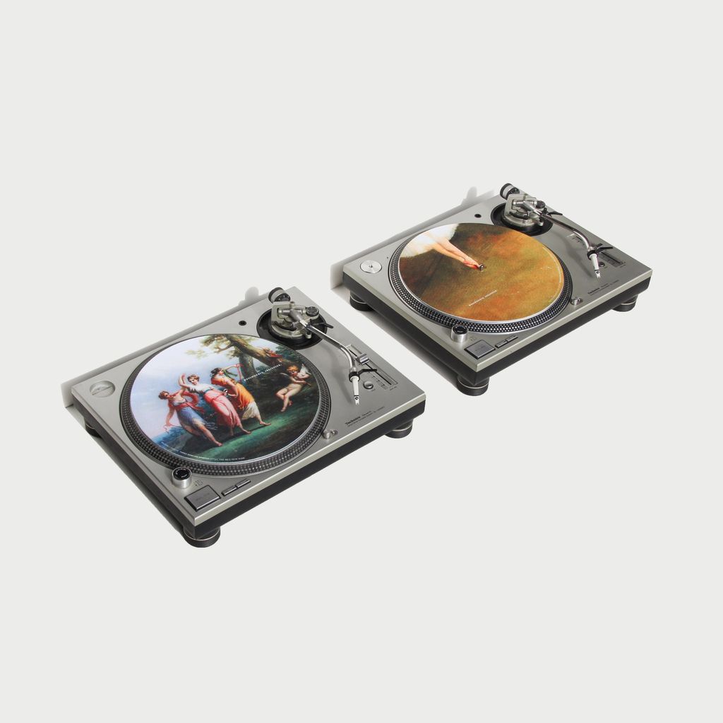 Beyond these perfect names, we found that these two static artworks exude a dynamic feeling we had to see in motion — what better place than a record player, a kind of moving canvas.