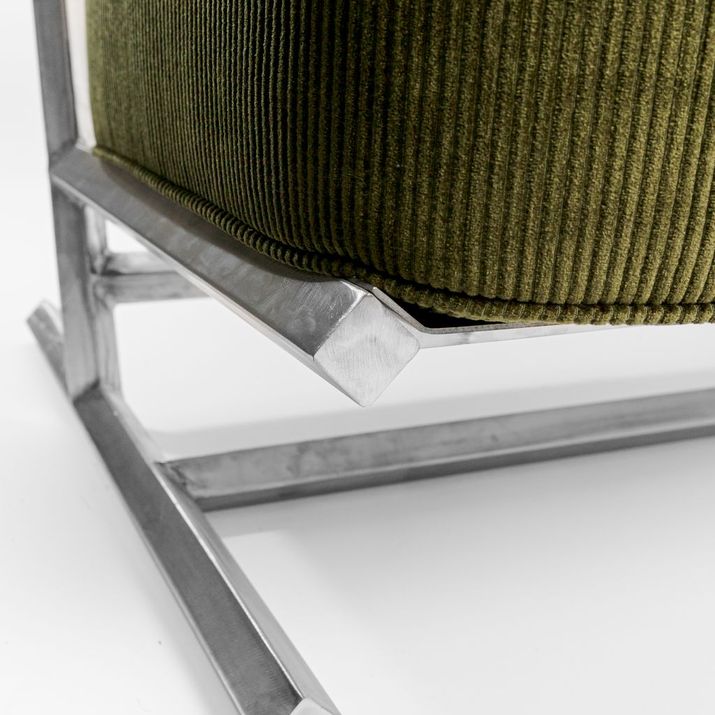 The A45 Sofa is a piece developed as a part of a constructive exploration on PTR (Square section steel tubing). The construction was born from the simple act of rotating a 1” PTR in a 45° angle and articulating a rational approach to a chair through the degrees of freedom afforded by the angled disposition of the tubing. The piece utilizes only 4 materials for the build, PTR, stainless steel plaques, upholstered seat and backrest and aluminum rivets, which can then be powdercoat painted.