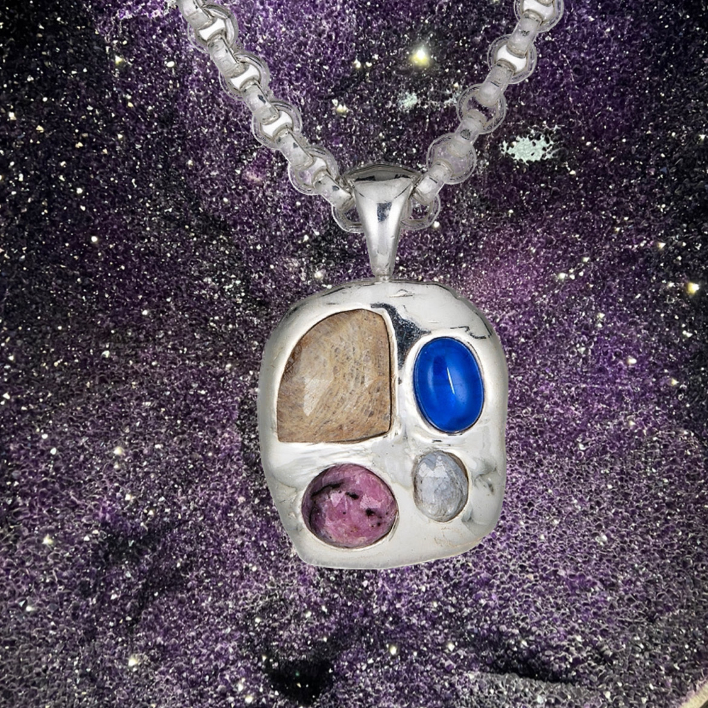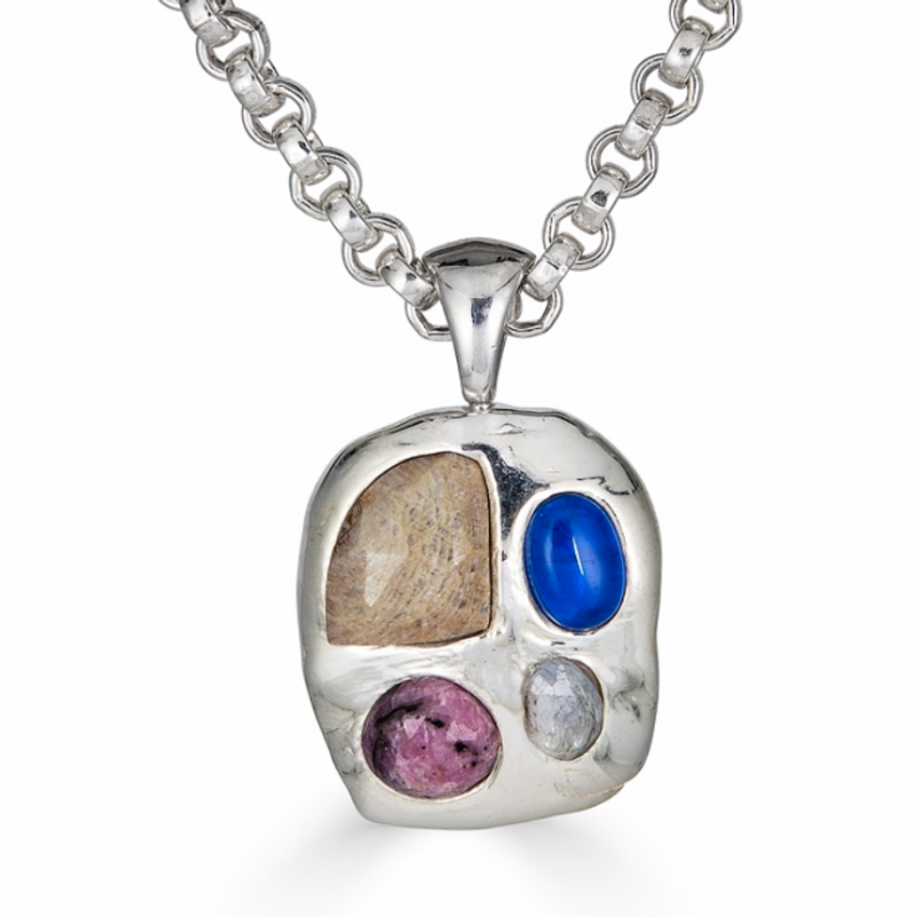 Custom charm with sapphires set into sterling silver. Stones can vary.