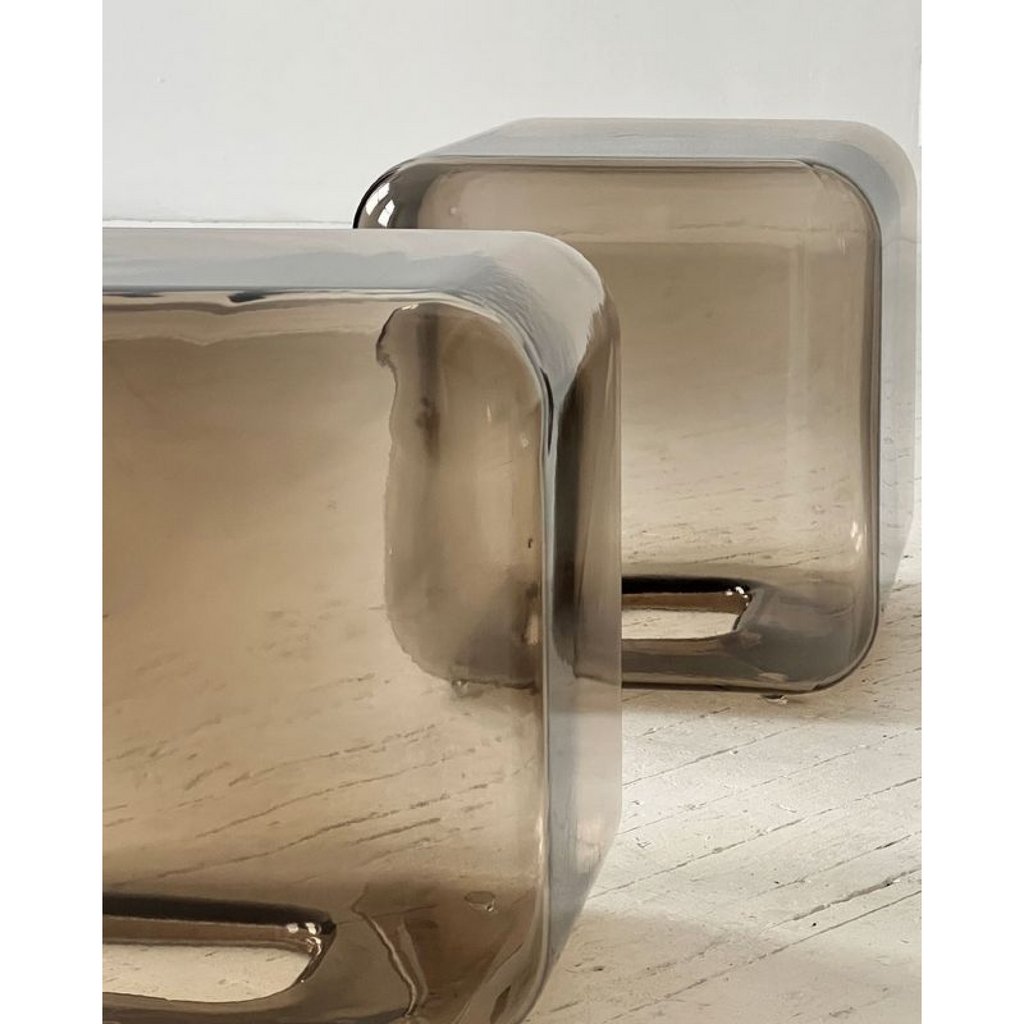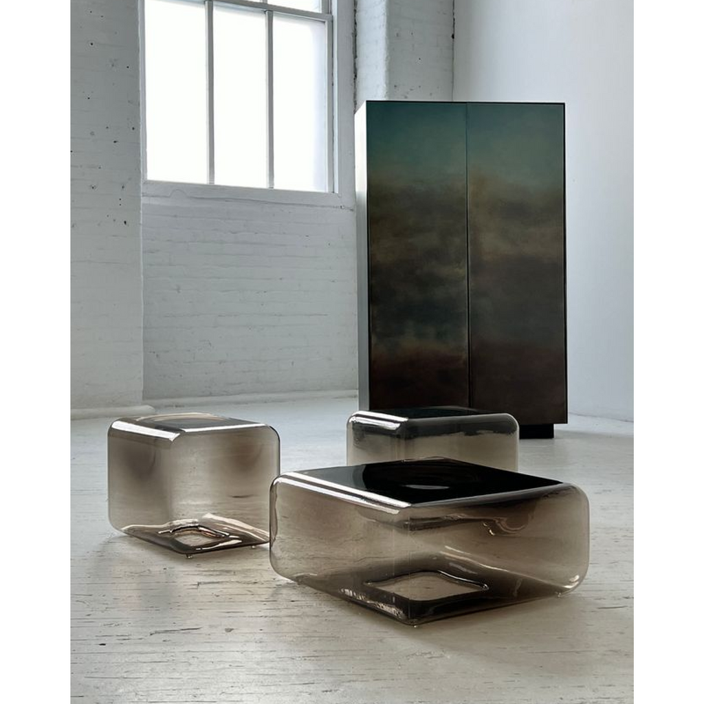 Matter, light and colour come together in an intense interaction of materials. This collection embodies the elegance of pure forms, elevated through the use of hand-blown glass. Sabine Marcelis, known for her poetic and precise use of reflective surfaces and iridescent shades of colour, has designed a collection of ethereal beauty that creates extraordinary plays of light and shadow. Lokum is available in rectangular and square versions in two different shades. Its is very flexible, used either as a single piece or in combination with other elements to create unique and personalized configurations.