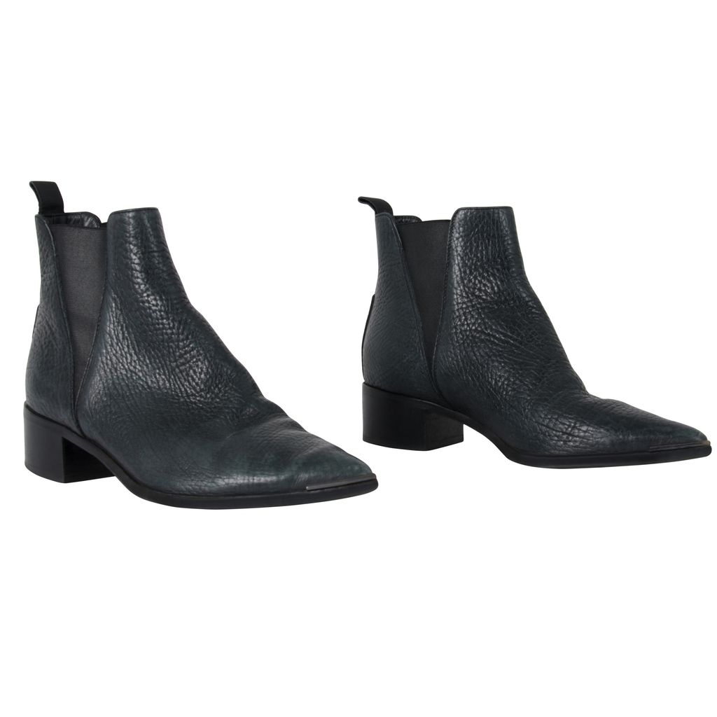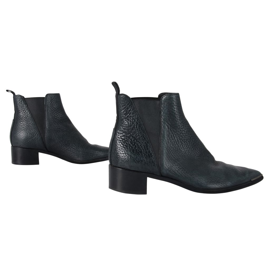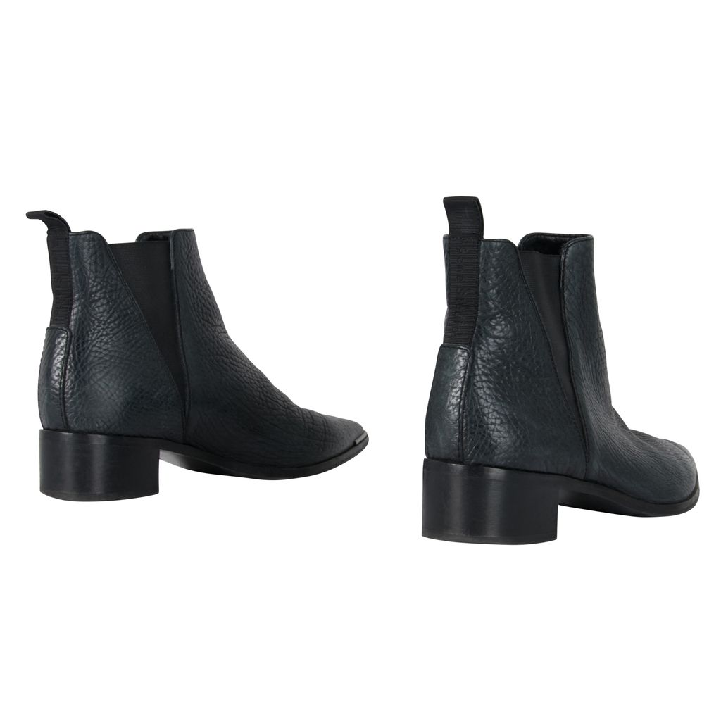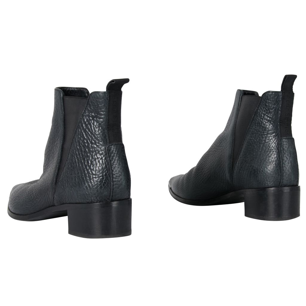 These Jensen leather boots from Acne Studios feature a pebbled leather outer, a block heel, elasticated insets fro easy wear and fit, and has a pointed-tie silhouette. Toe has inlayed metal detailing. Gently worn, all marks as pictured. Perfect for everyday or a night out.