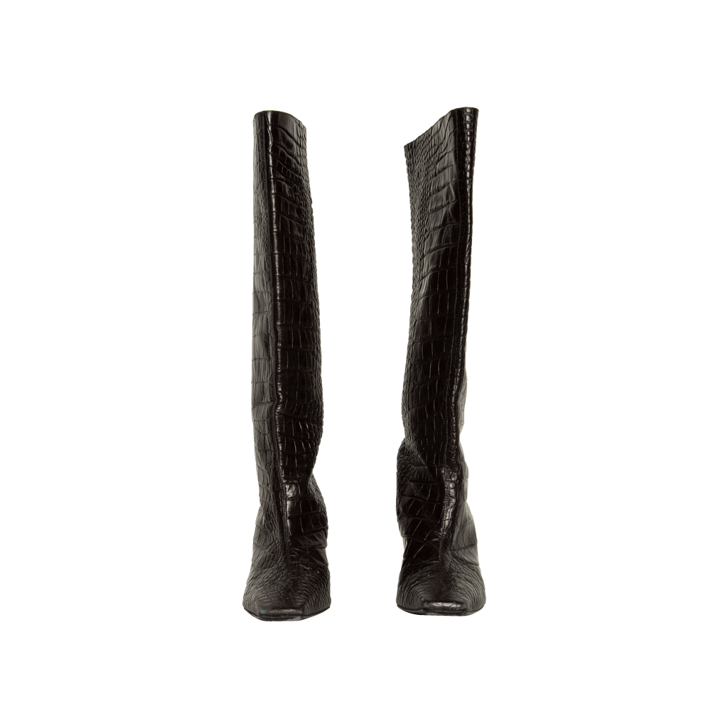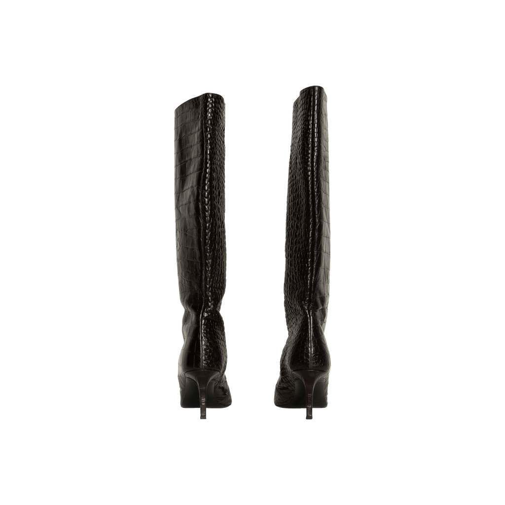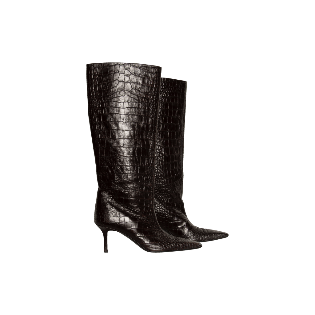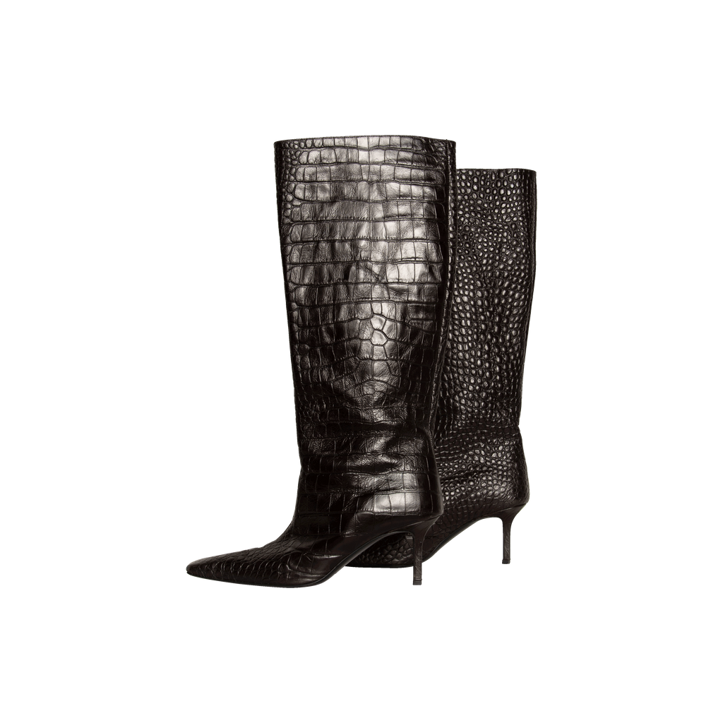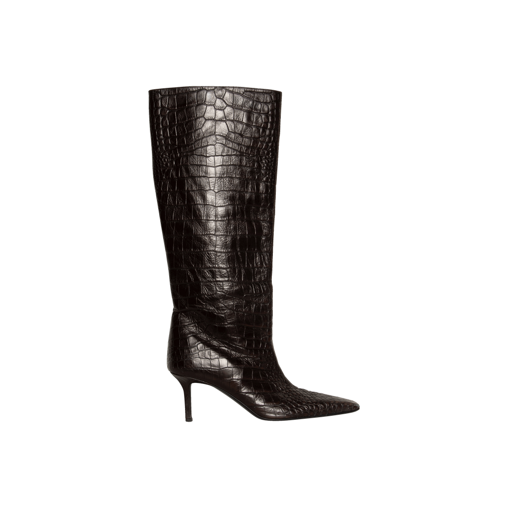 Acne Studios Leather Heel Boots features embossed leather, pointed toe.