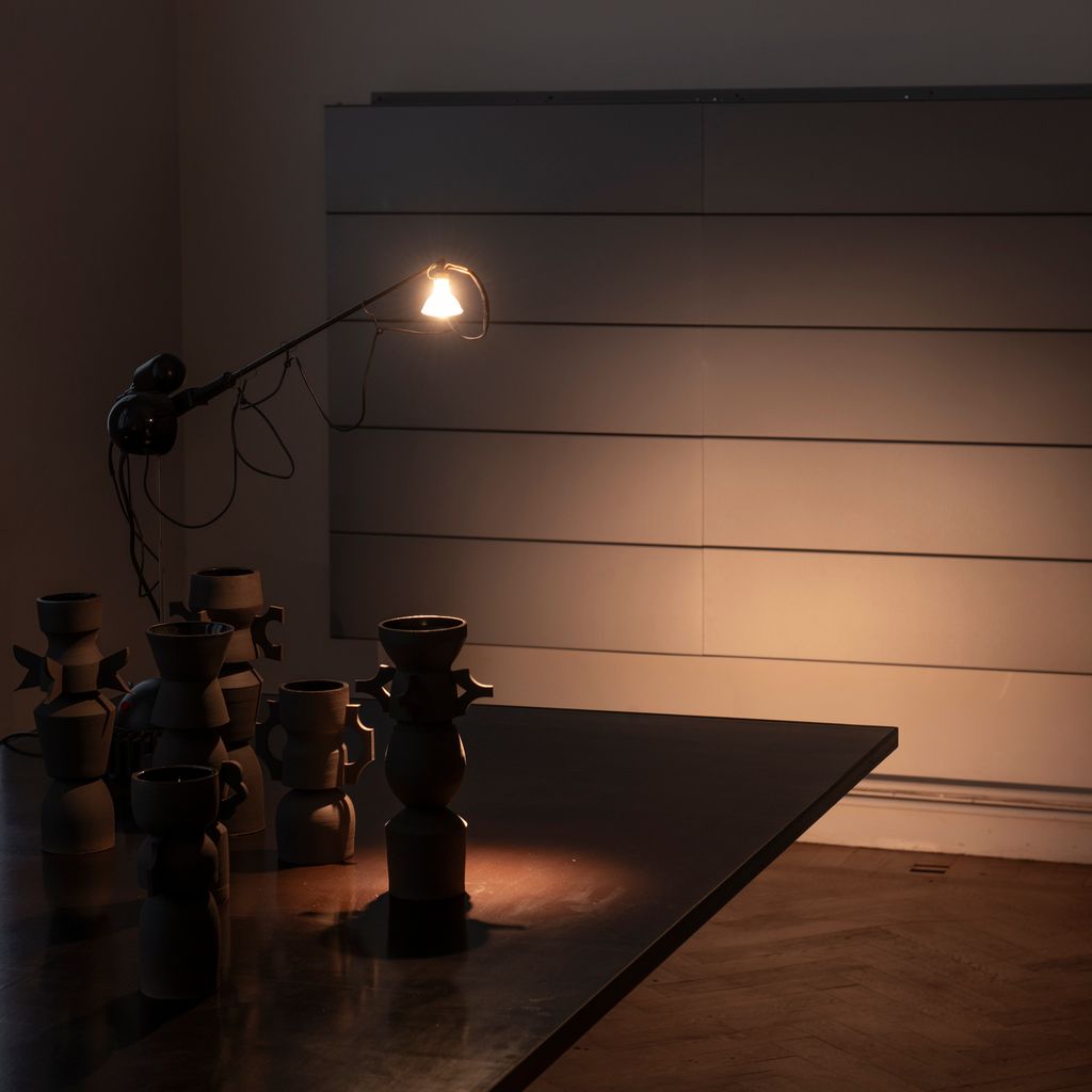 Fritz Adamski is a ceramist and object designer based in Düsseldorf. The series of vases he made for ‘An Angel’s Share’ consist of white stoneware coated with black stoneware and are glazed from the inside. The design language of the series is influenced by Bauhaus and Memphis and those groups’ shared interest in what might be called primary forms. Despite the precision with which the vases have been crafted, Adamski eschews preparatory sketches or constructions. His design process is intuitive, and he stresses the handmade quality of his objects.