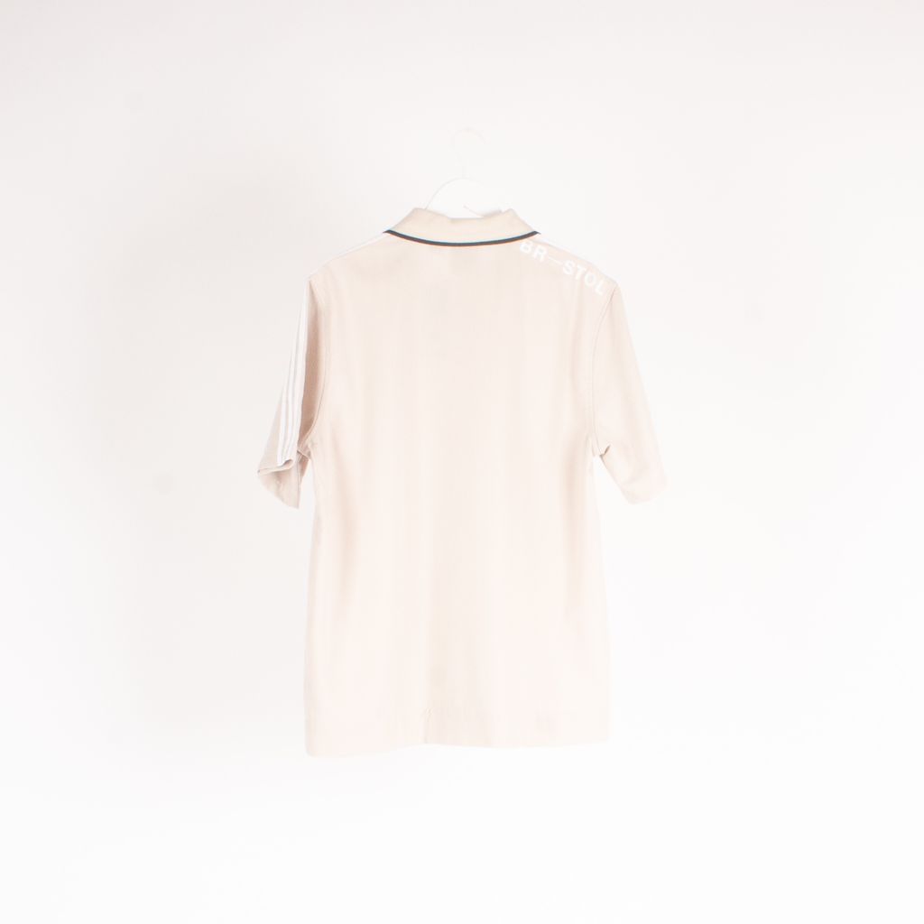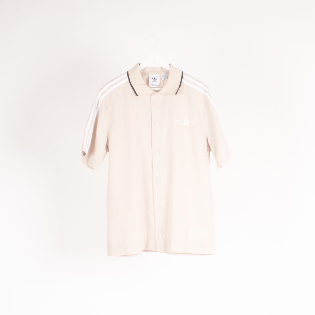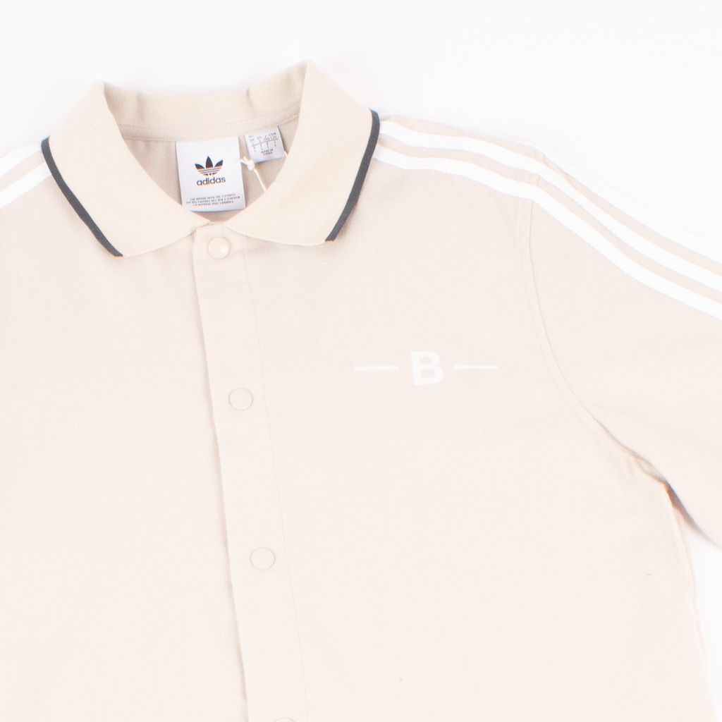 Modeled after turn of the century basketball warmup outfits, this shirt from Adidas and Bristol Studio is cool on or off the court. Features tonal snap front closure, triple stripe detail down sleeves, Bristol Studio B graphic on chest, elbow length sleeves, and medium sized collar.