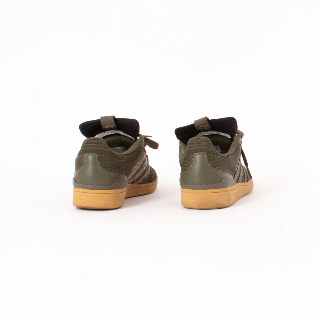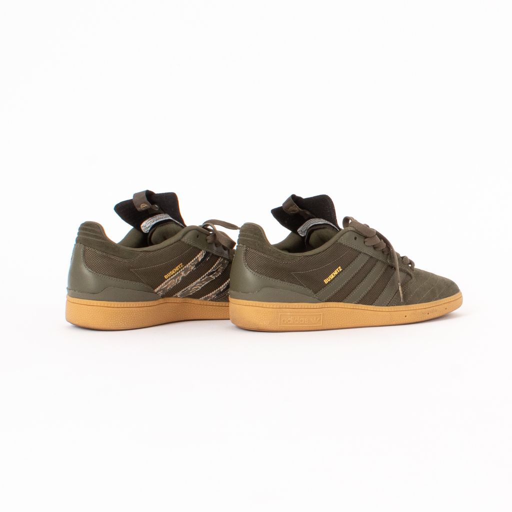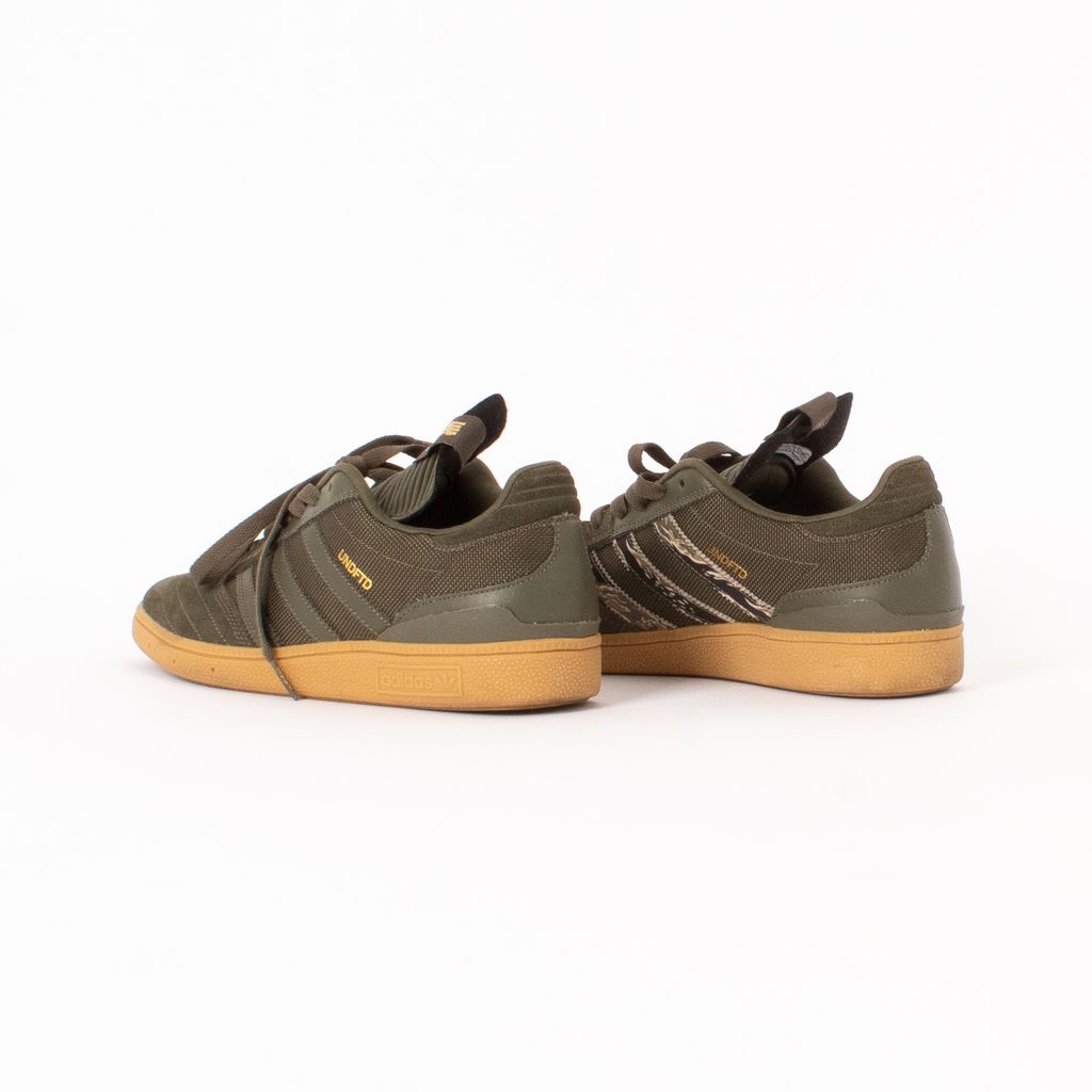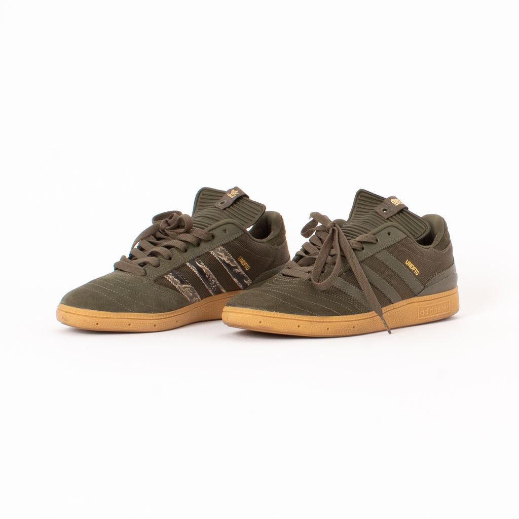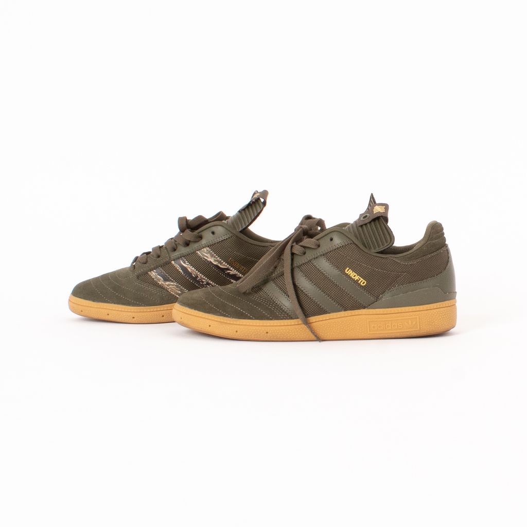 An ode to SF skateboarder Dennis Busenitz, these sneakers are built to ride with their grip enabled sole and flexible body. Features mixed material body fabrication, contrast colored soles, tonal laces, Undefeated logo at top of tongue, and inner stripes with tigerstripe camo print.