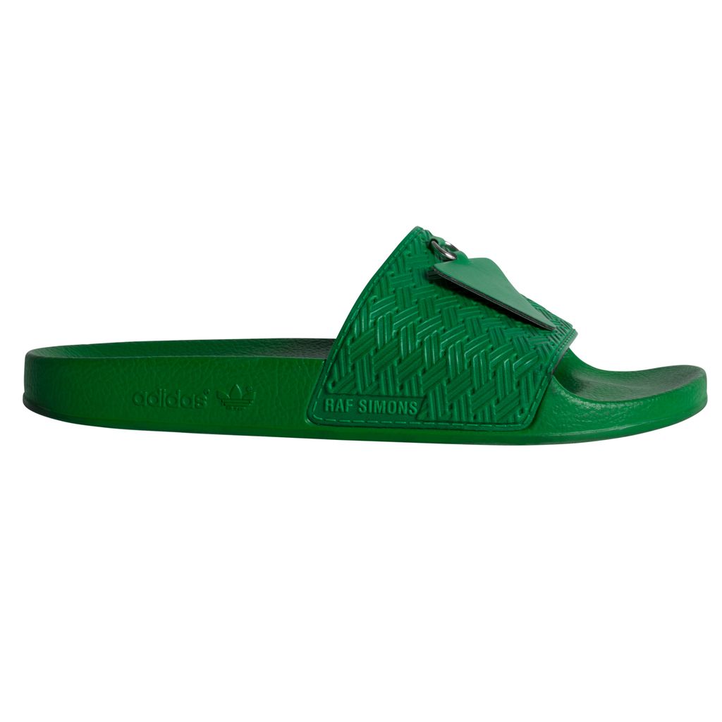 Delving into the Adidas archive, Belgian designer, Raf Simons combines the uppers of iconic sneakers with the poolside style of the Adilette.
