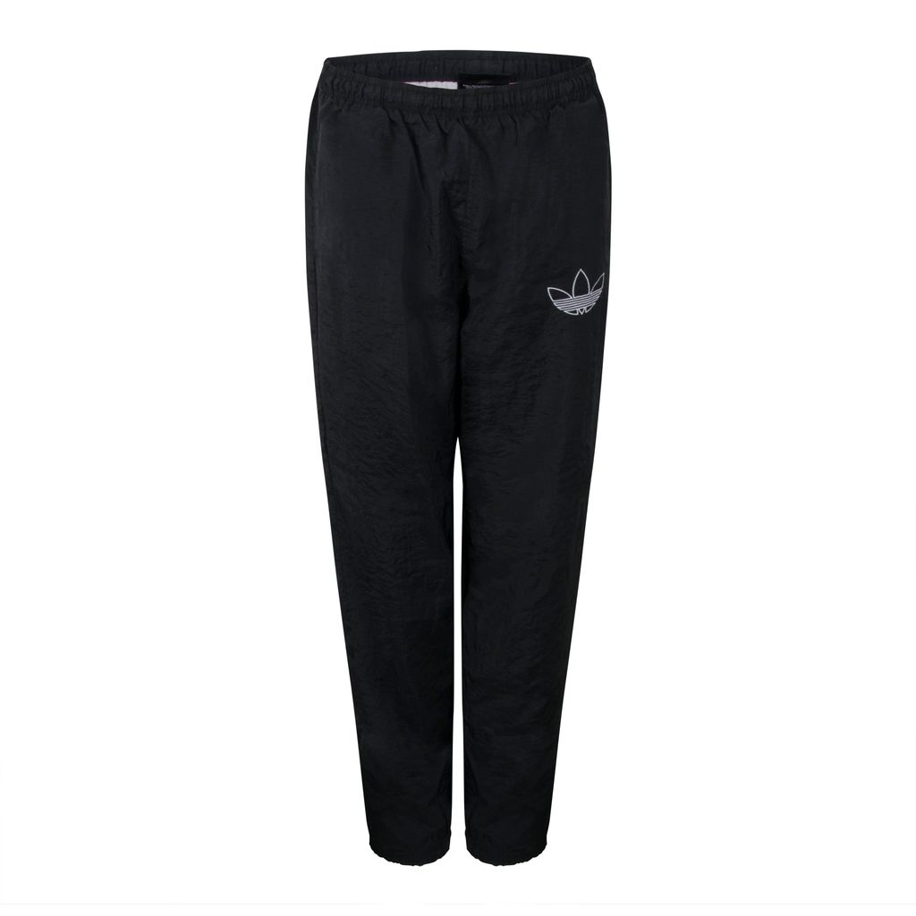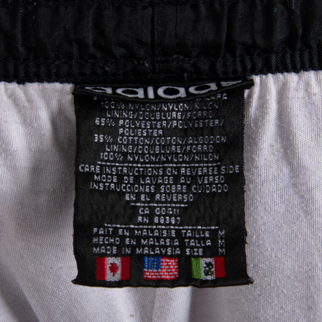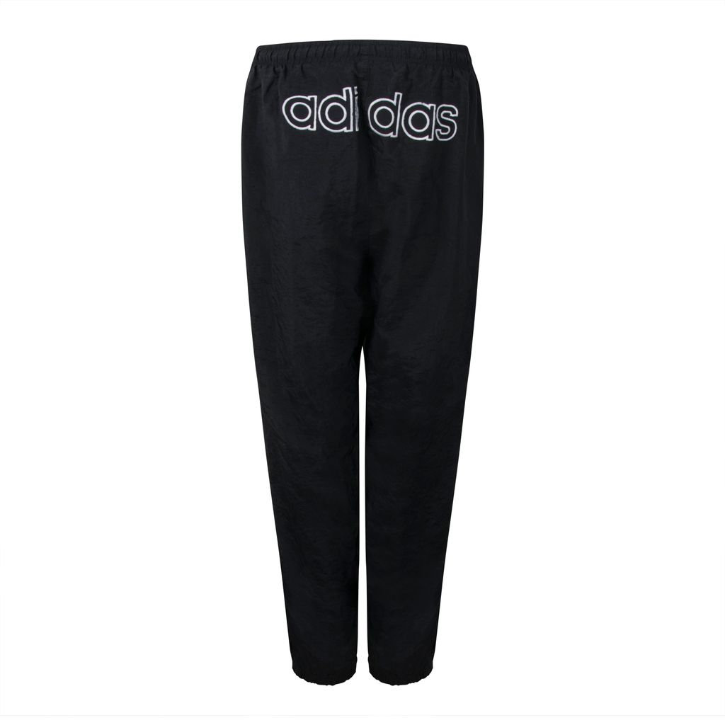 These sleek pants from Adidas feature an embroidered logo at the side pocket, an elastic stretch drawstring waistline, side pockets, ankle cuffs with zip detail, and is lined fully. Inner lining is cotton and nylon at the calf. Gently worn, marks as photographed.
