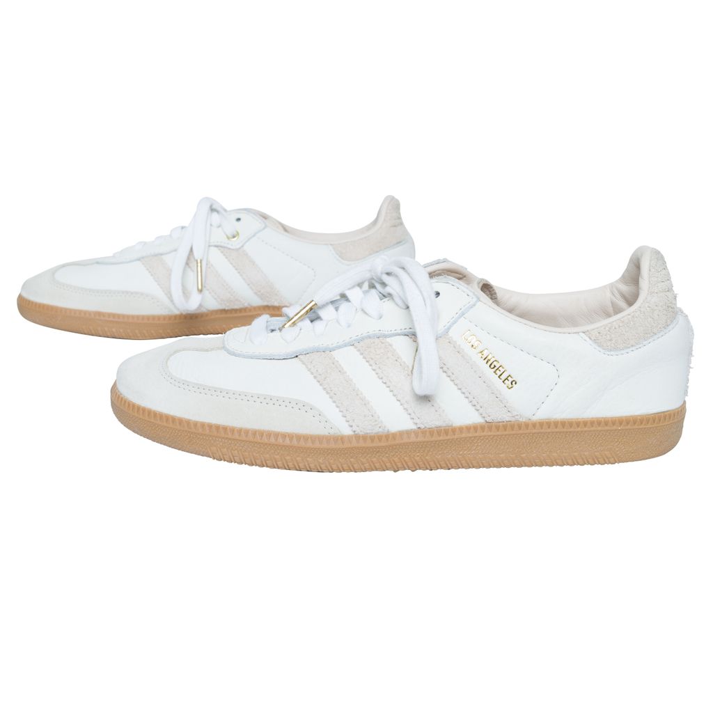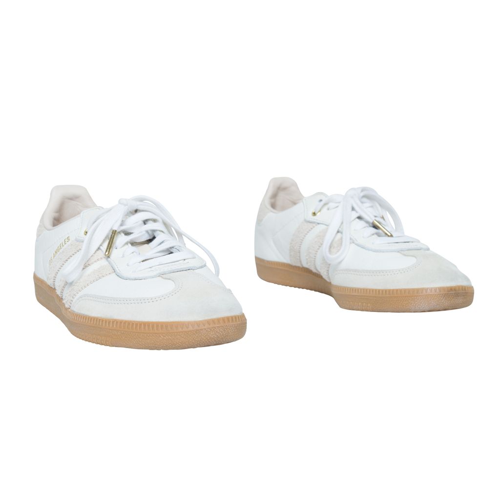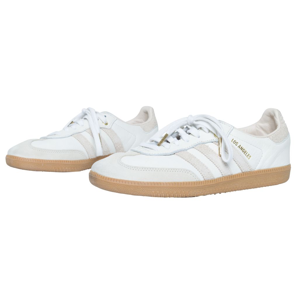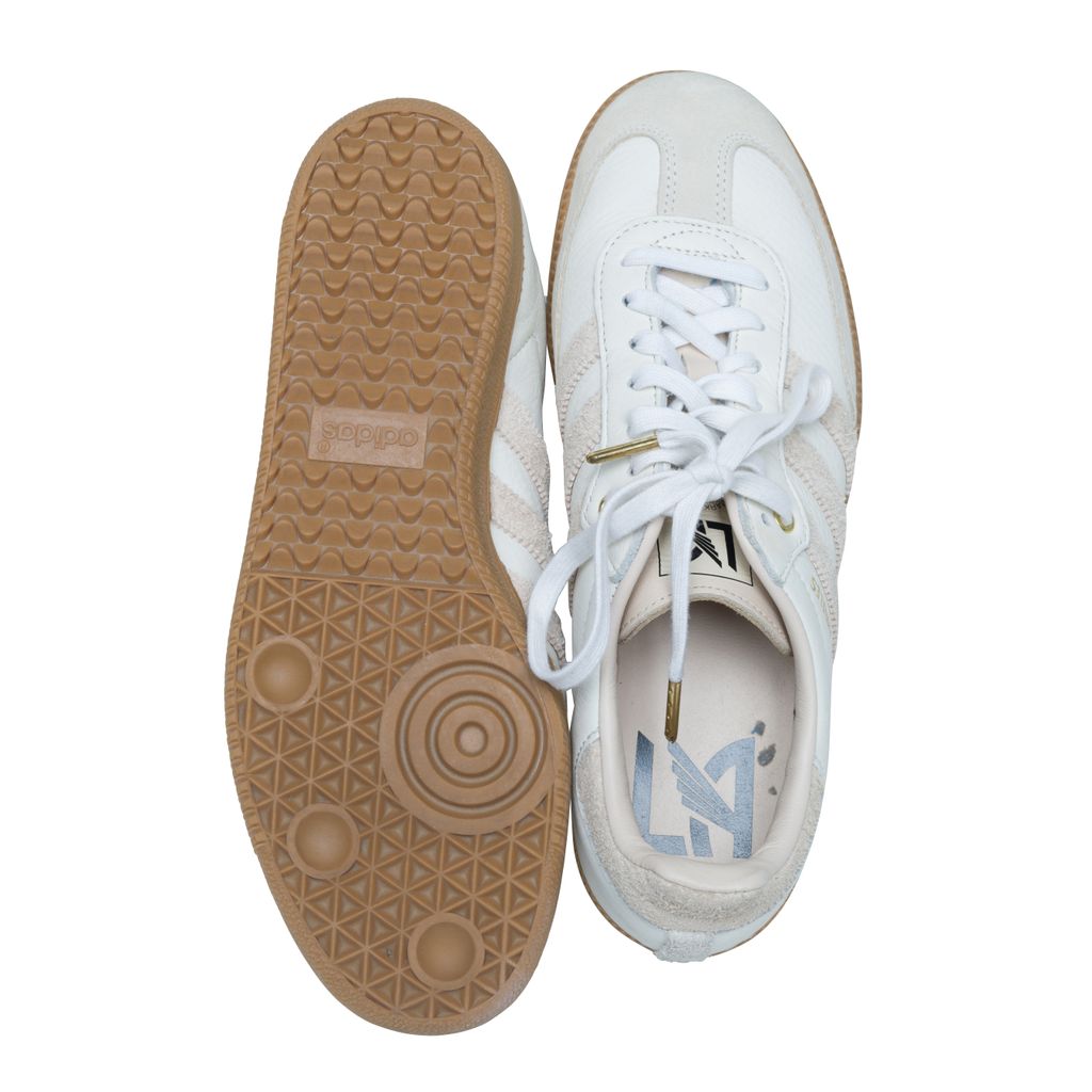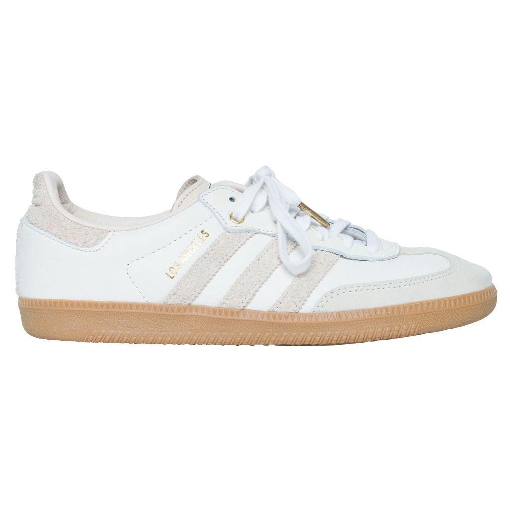 adidas Samba LAFC "Linen Gum" features leather upper, suede rounded toe, and rubber soles.