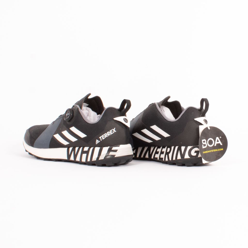 Designed for maximum comfort and off road grip, you'll want to hit the trails ASAP in these sneakers from Adidas. Features breathable mesh upper, thick sole with White Mountaineering text, treaded sole for optimized grip, turn lock lace closure, pull tab at back ankle, and tri-color design.