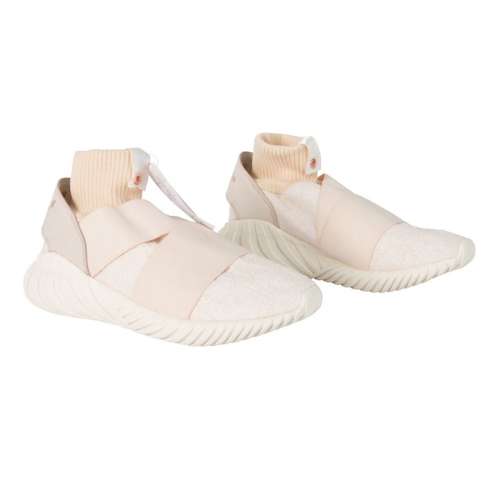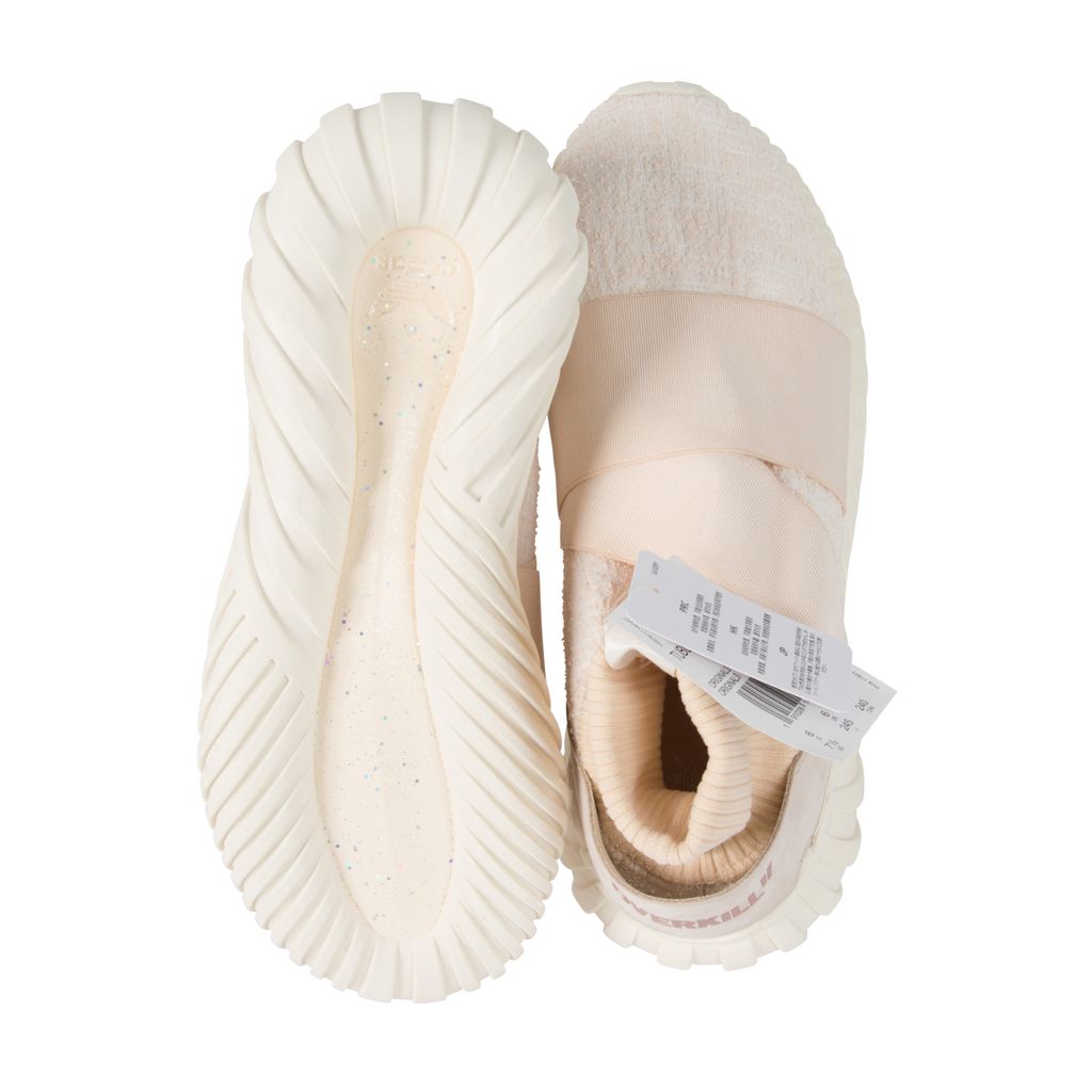 These Tubular Elastics sneakers from Adidas in ivory and beige bouclé knit are lightweight and showcases dual branding and a signature tire-inspired tubular design. The outer is constructed from a linen blend and has an elastic wrap over for a fitted shape.