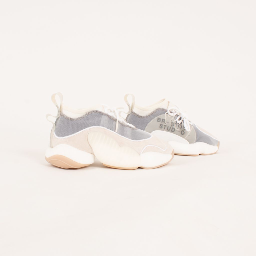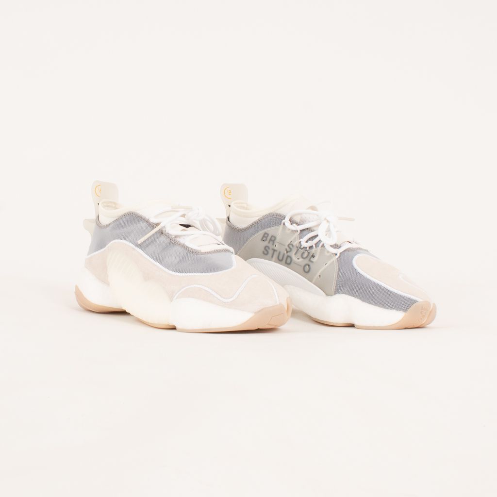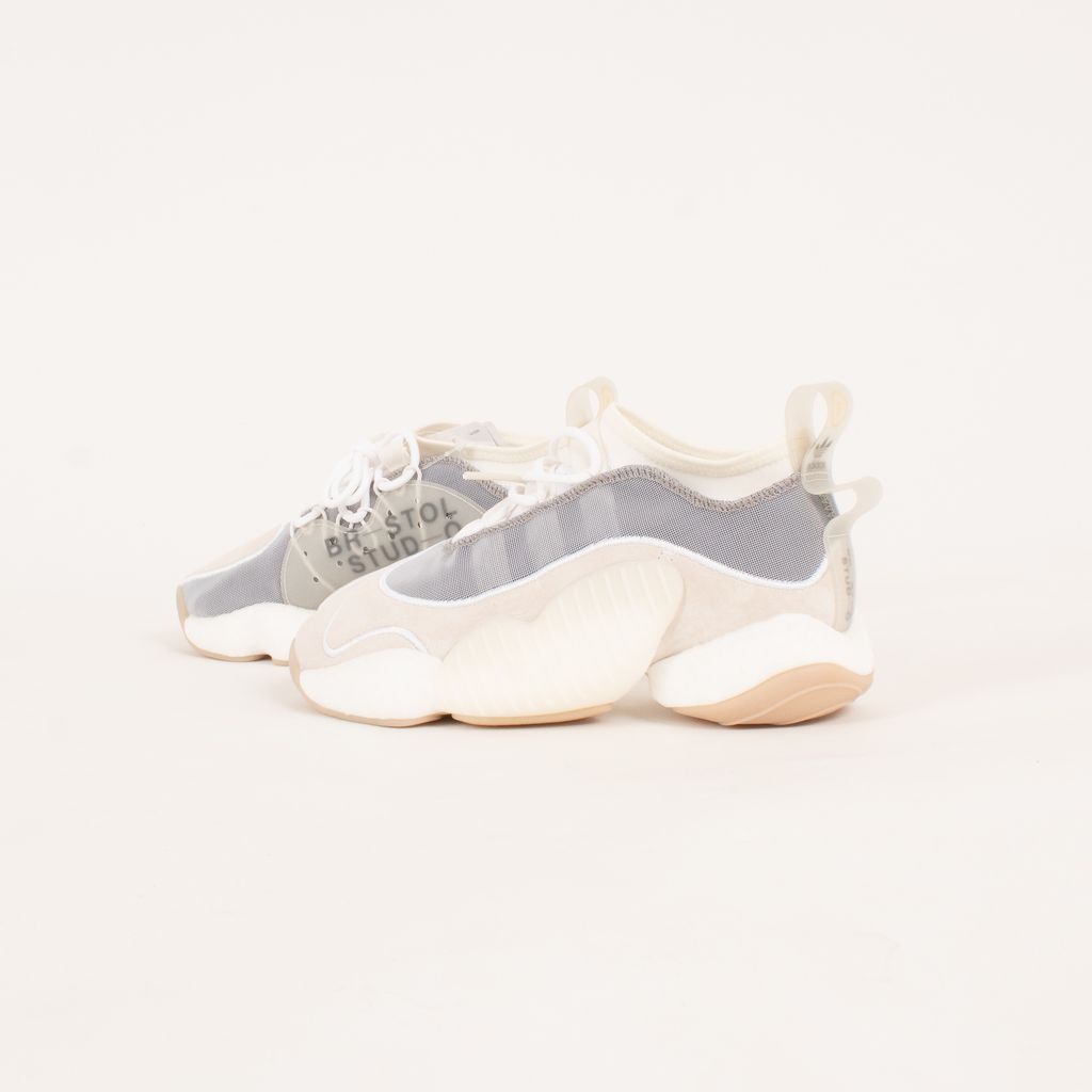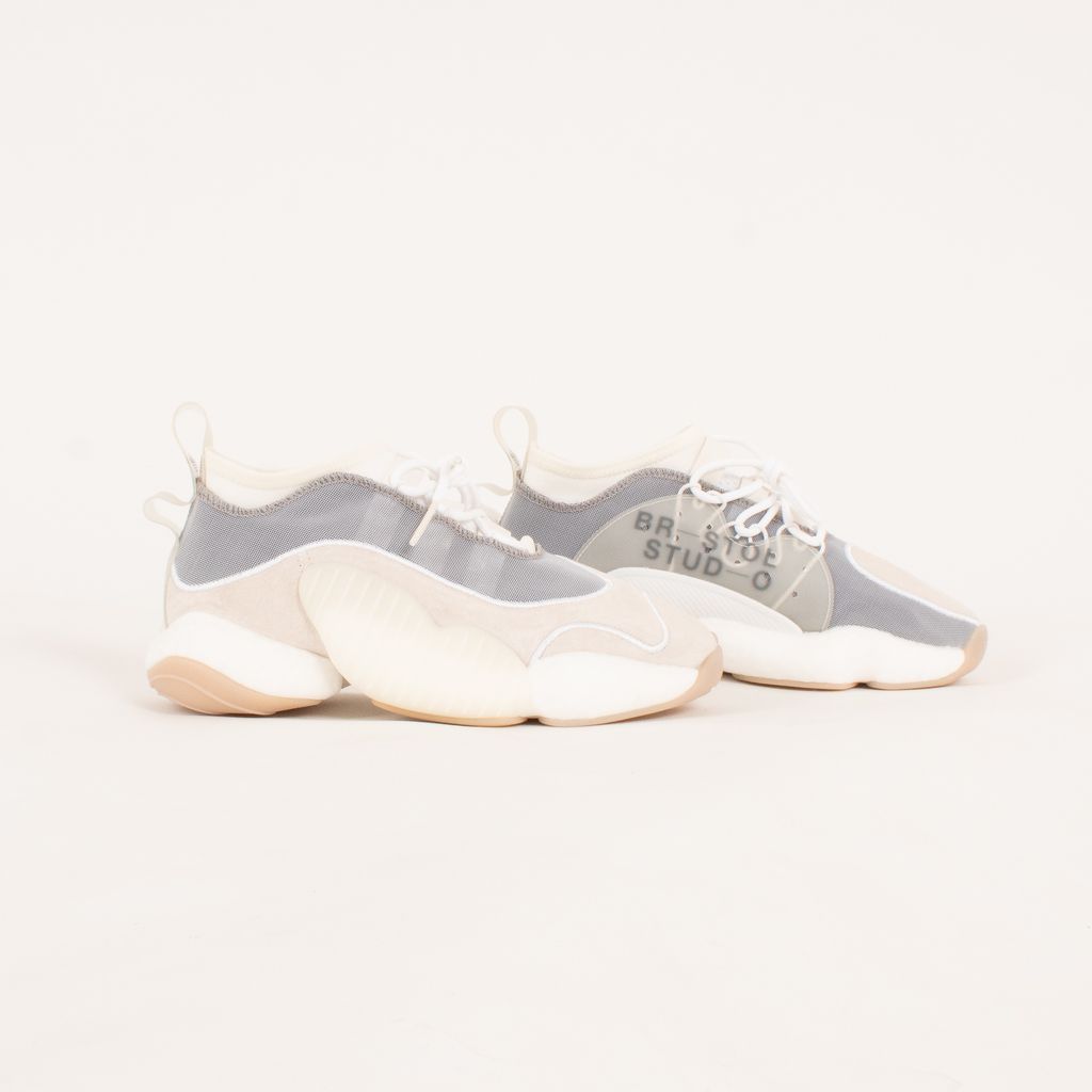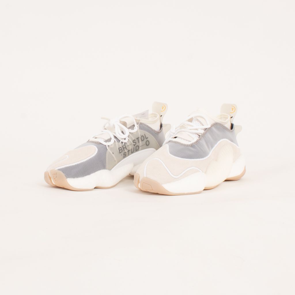 Coming from a collaboration between Adidas and LA based fashion and lifestyle brand Bristol Studio, these shoes takes inspiration from old basketball shoes and combines them with futuristic technology and design. Features mesh and nubuck upper body, Adidias Boost soles, sock like fit, Bristol Studio logo on inner sides with plastic overlay, and Adidas X Bristol Studio branded pull tabs at heels.