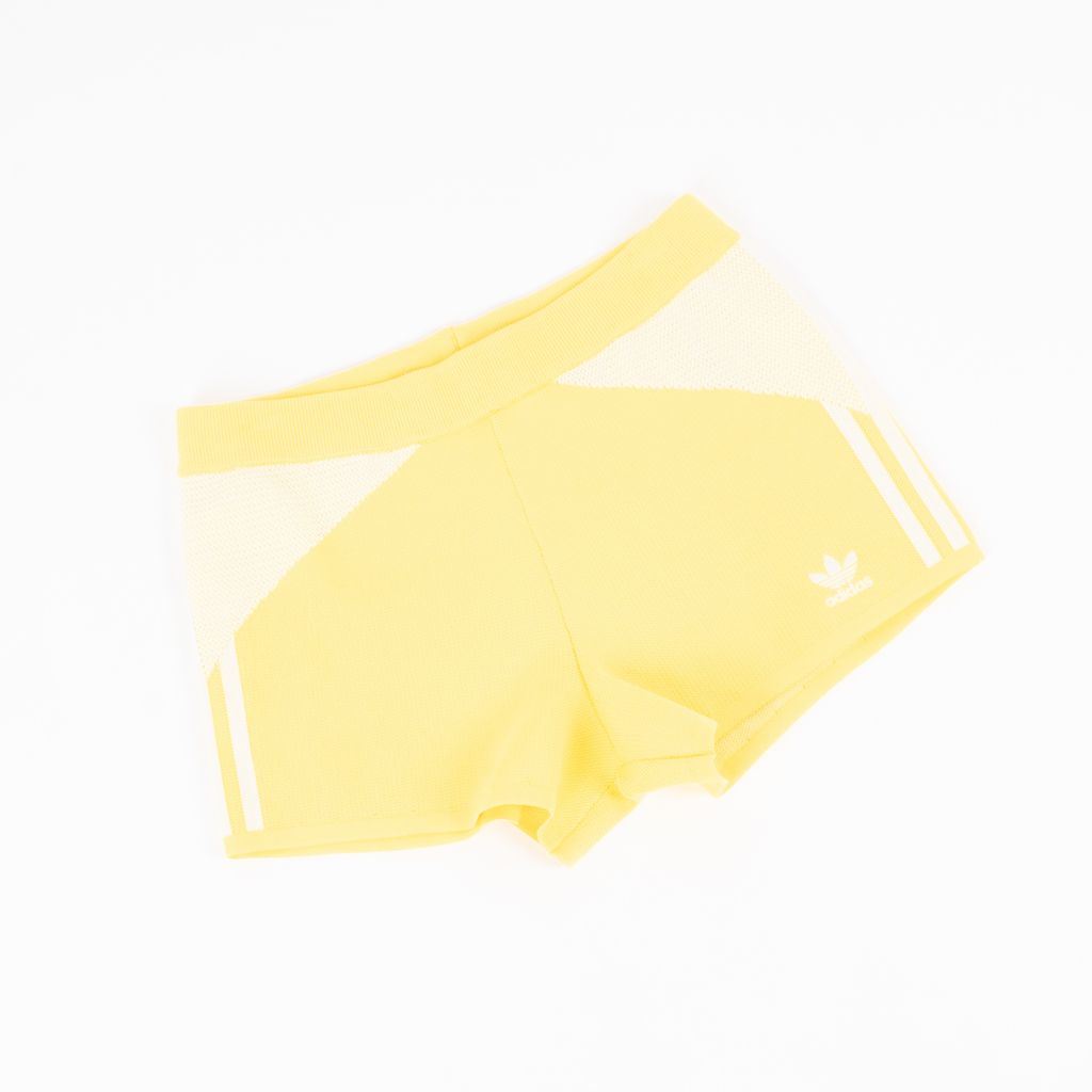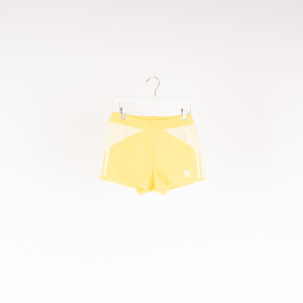 These sporty lemon yellow knit shorts come from the 2018 collaboration between Adidas and Danielle Cathari. They feature a banded stretch waistline, contrast side tape detail, and have the Adidas logo embroidered at the hem. Shop the matching shirt from Cailin, for a color coordinated and comfortable look. Brand new, tag attached.