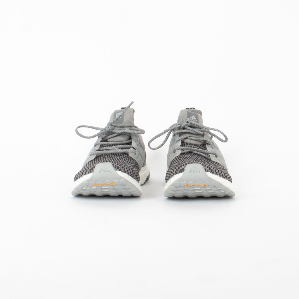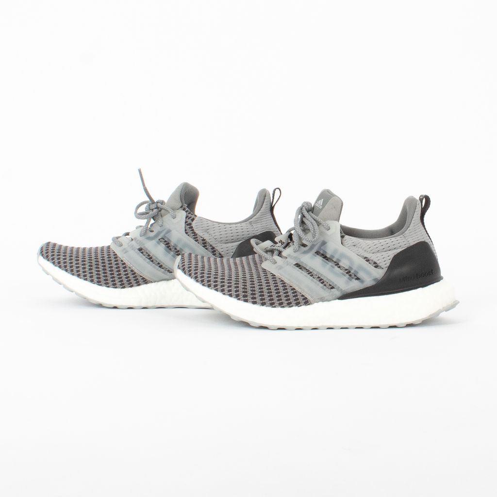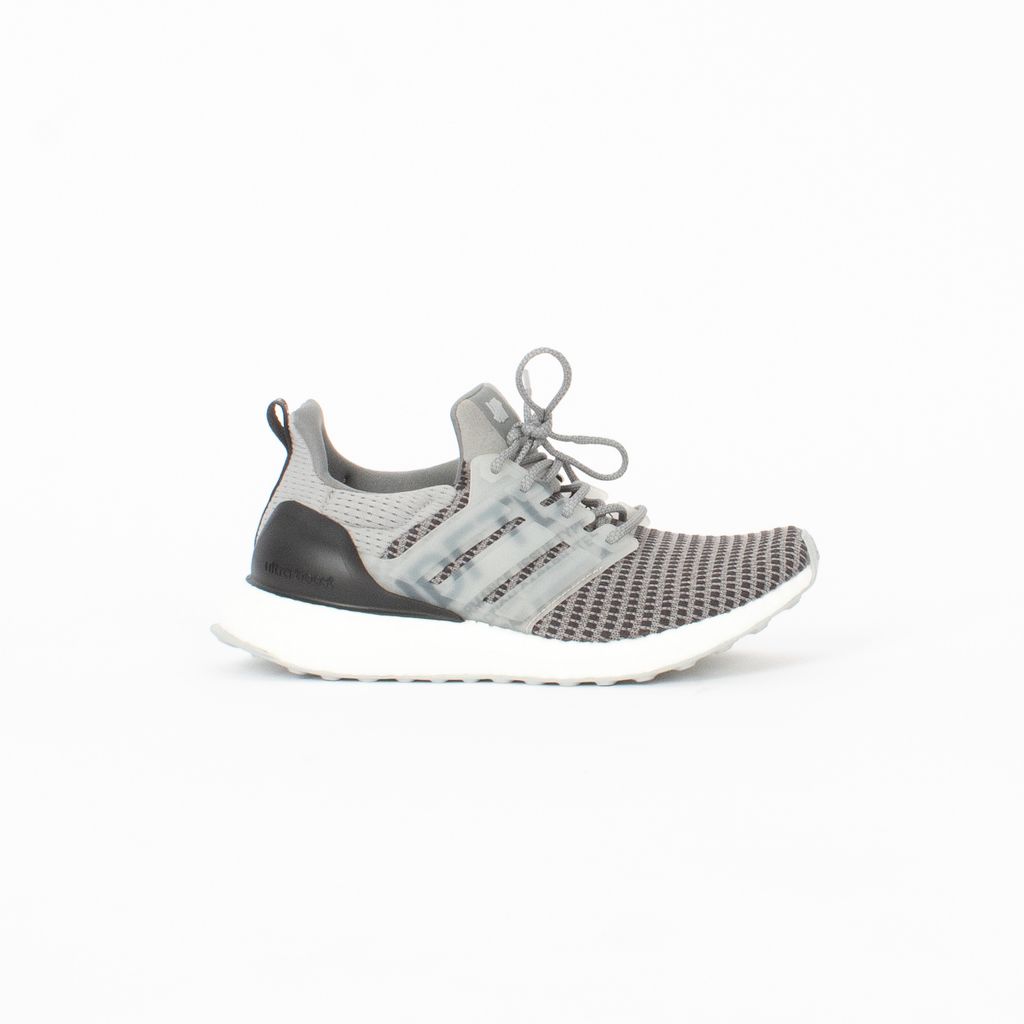 Coming from a recent collaboration between Undefeated and Adidas, these lightweight sneakers pack a heavy design punch. Features Ultra Boost cushioned and contrast colored sole, semi-sheer lace up overlay with UNDFTD text, all over mesh body construction, tonal grey coloring on interior neck, Undefeated logo on tongue, tonal laces, and Undefeated x Adidas trim/pull tab at heel.
