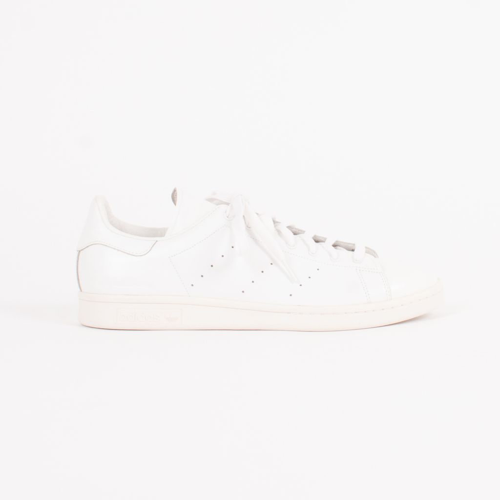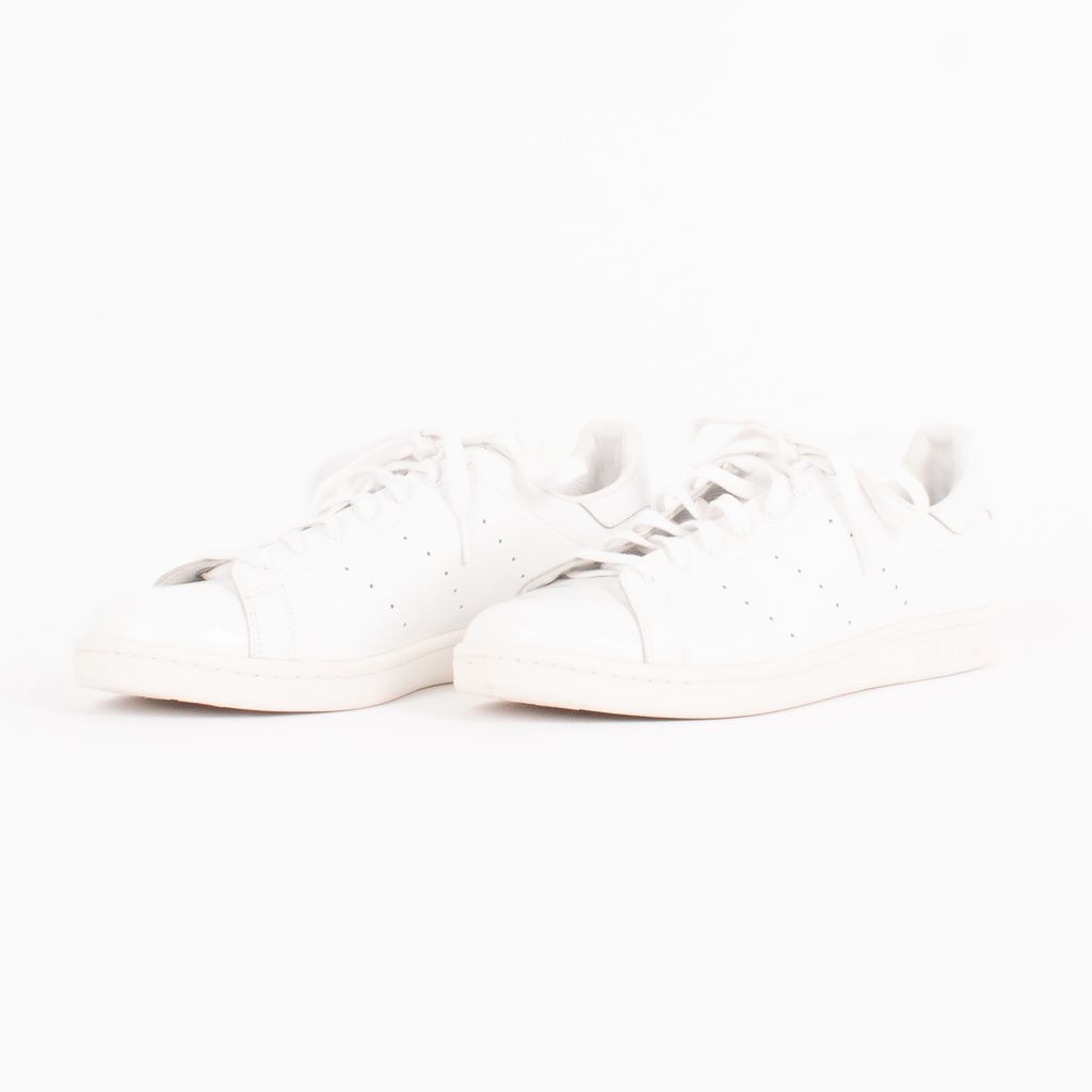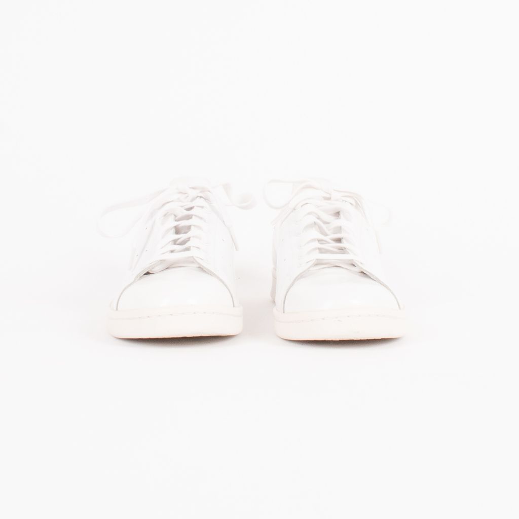 These sneakers from a collaboration between Adidas and Japanese brand White Mountaineering, are a breath of fresh air into a classic style and fashion staple. Features white patent body, thin rubber sole, padded heel at ankle, and tonal laces.