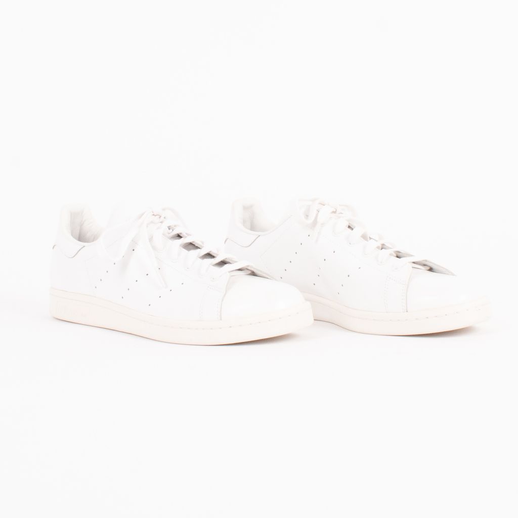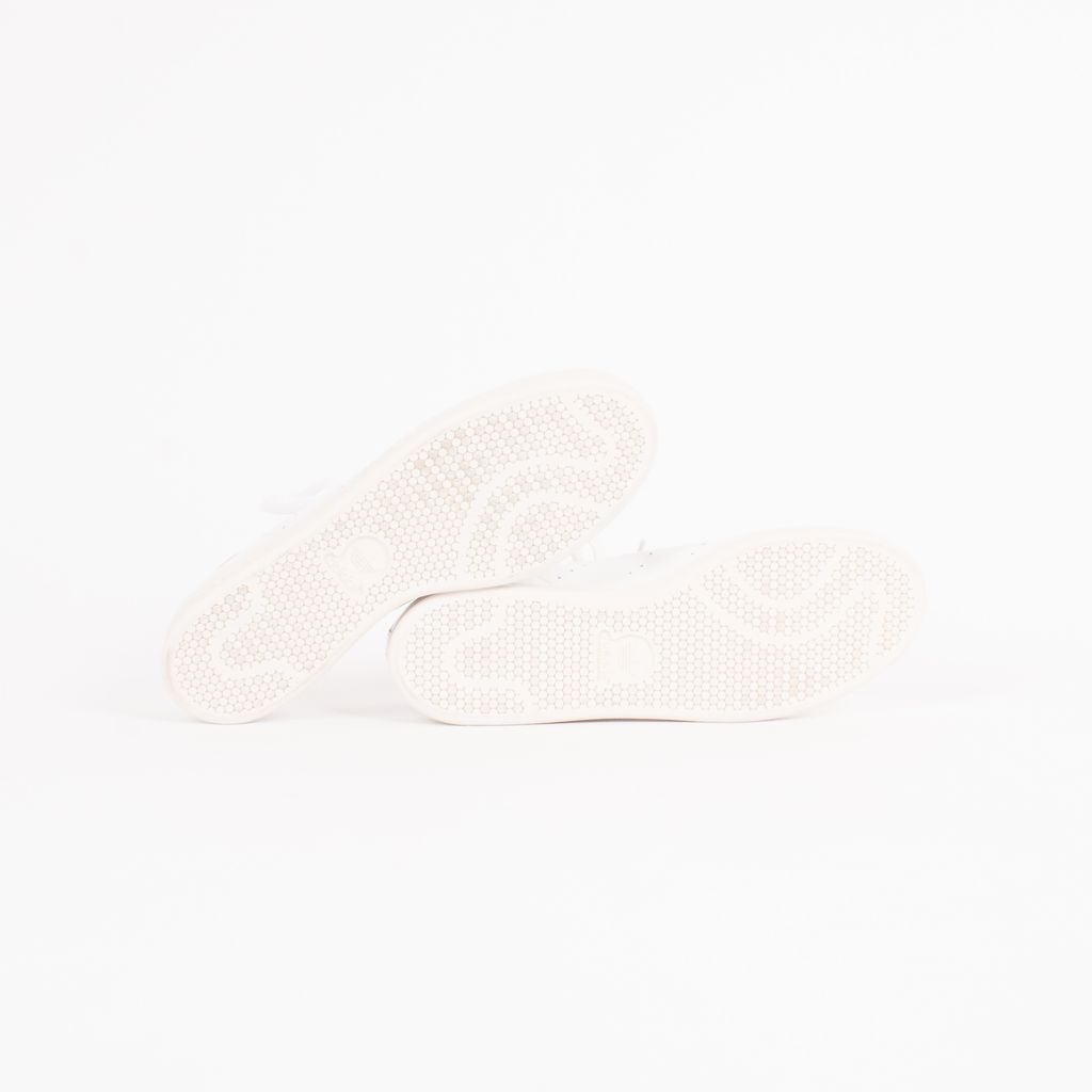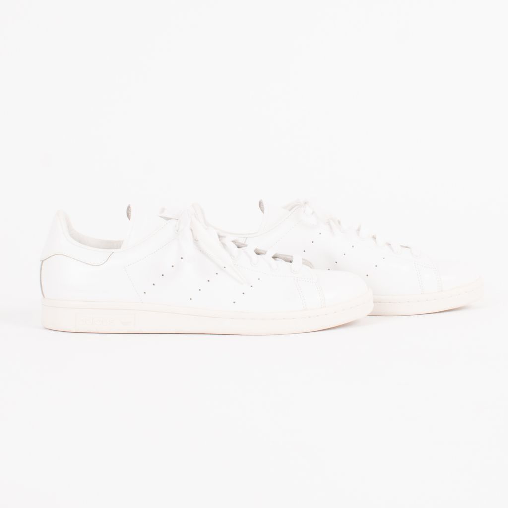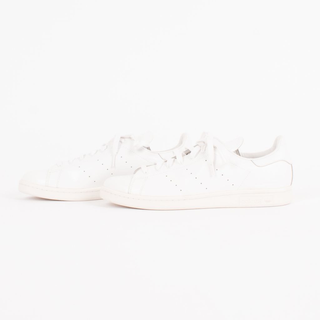 These sneakers from a collaboration between Adidas and Japanese brand White Mountaineering, are a breath of fresh air into a classic style and fashion staple. Features white patent body, thin rubber sole, padded heel at ankle, and tonal laces.