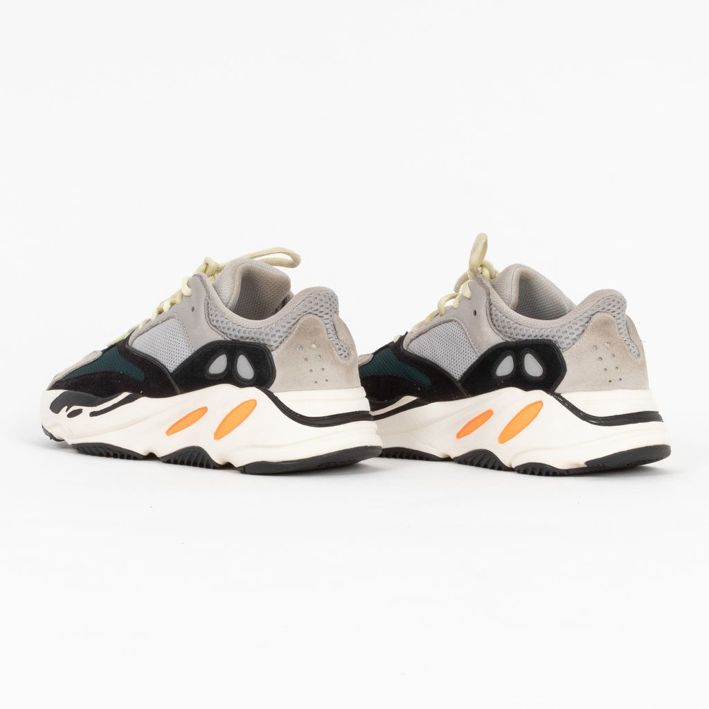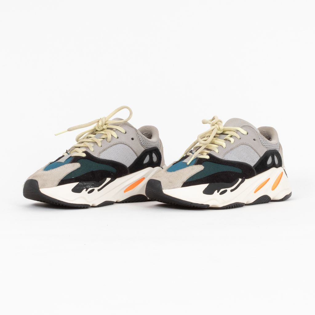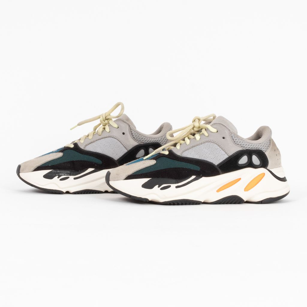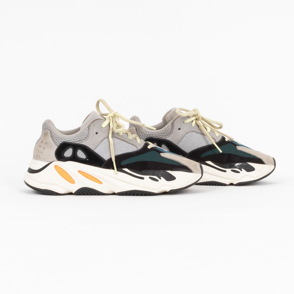 This inaugural colorway of Kanye West’s Yeezy Wave Runner 700 launched in November 2017, following a public debut earlier in the year as part of the Yeezy Season 5 runway show. Features suede, mesh, and leather body, chunky rubberized sole, neon green laces, padded tongue and neck, and pops of color throughout.