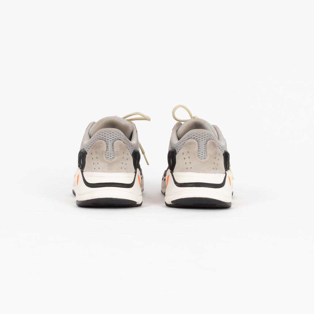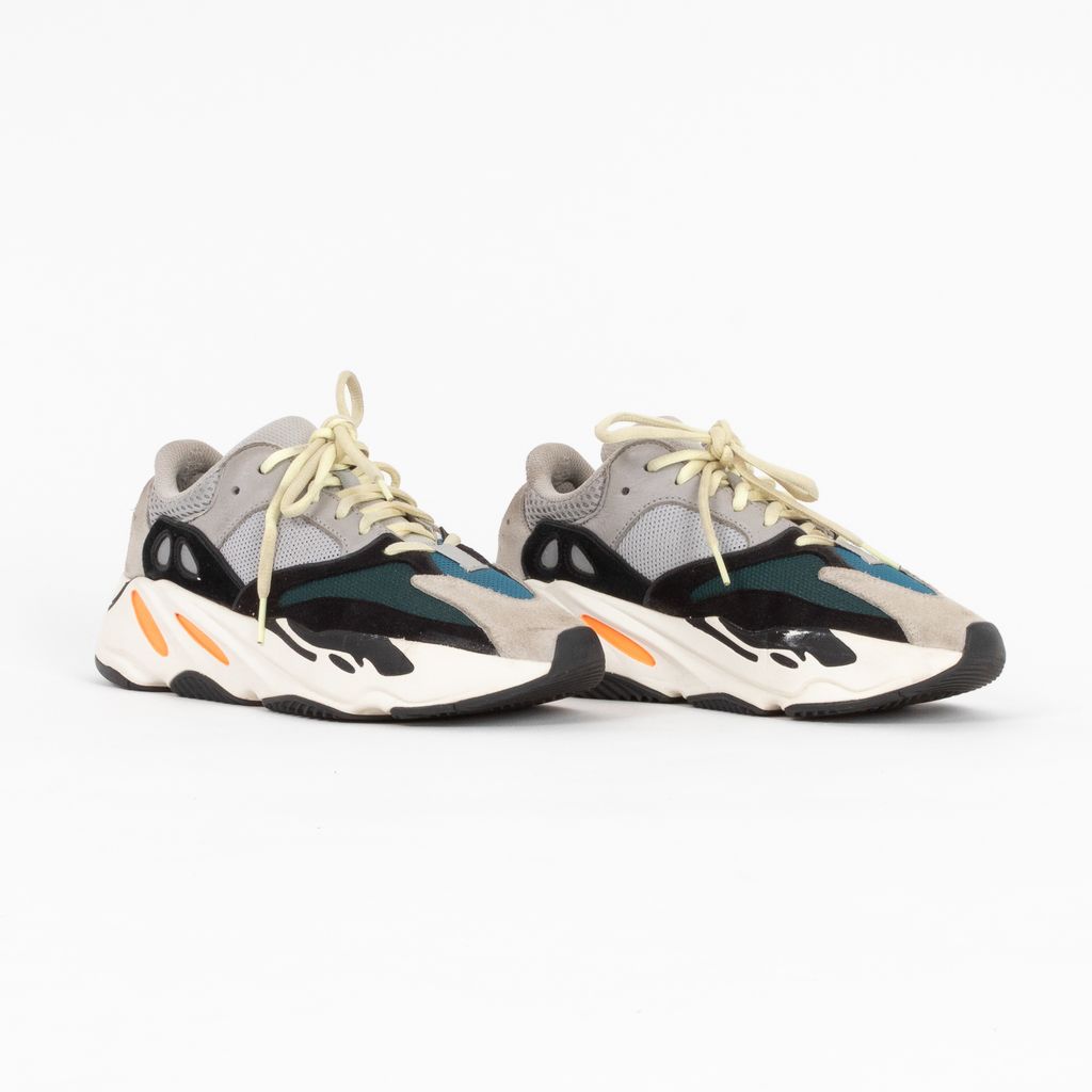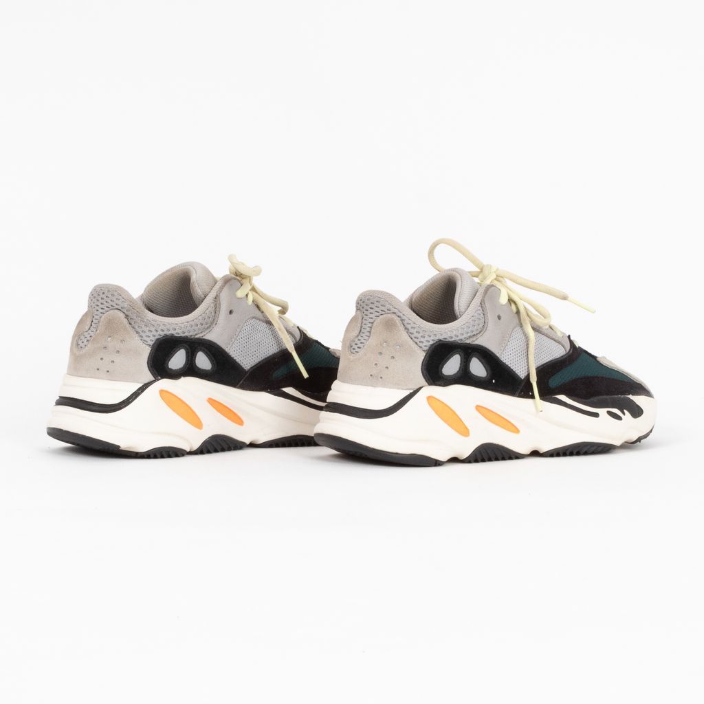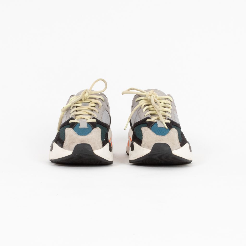 This inaugural colorway of Kanye West’s Yeezy Wave Runner 700 launched in November 2017, following a public debut earlier in the year as part of the Yeezy Season 5 runway show. Features suede, mesh, and leather body, chunky rubberized sole, neon green laces, padded tongue and neck, and pops of color throughout.